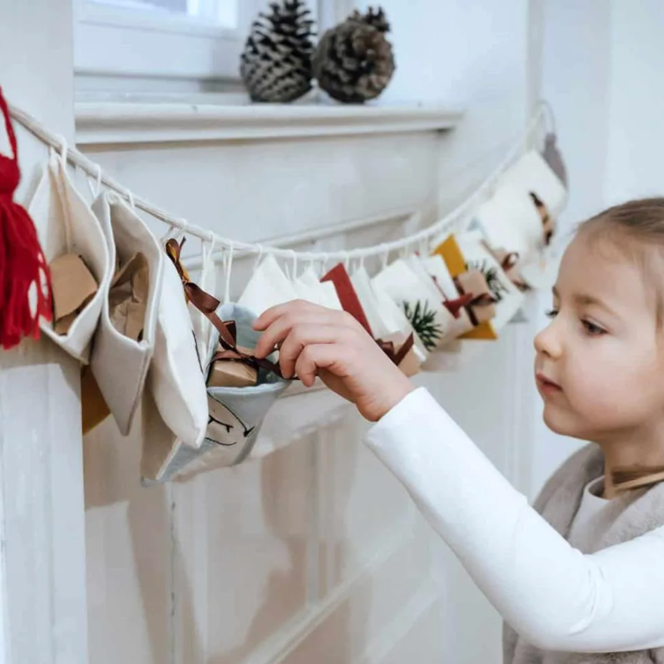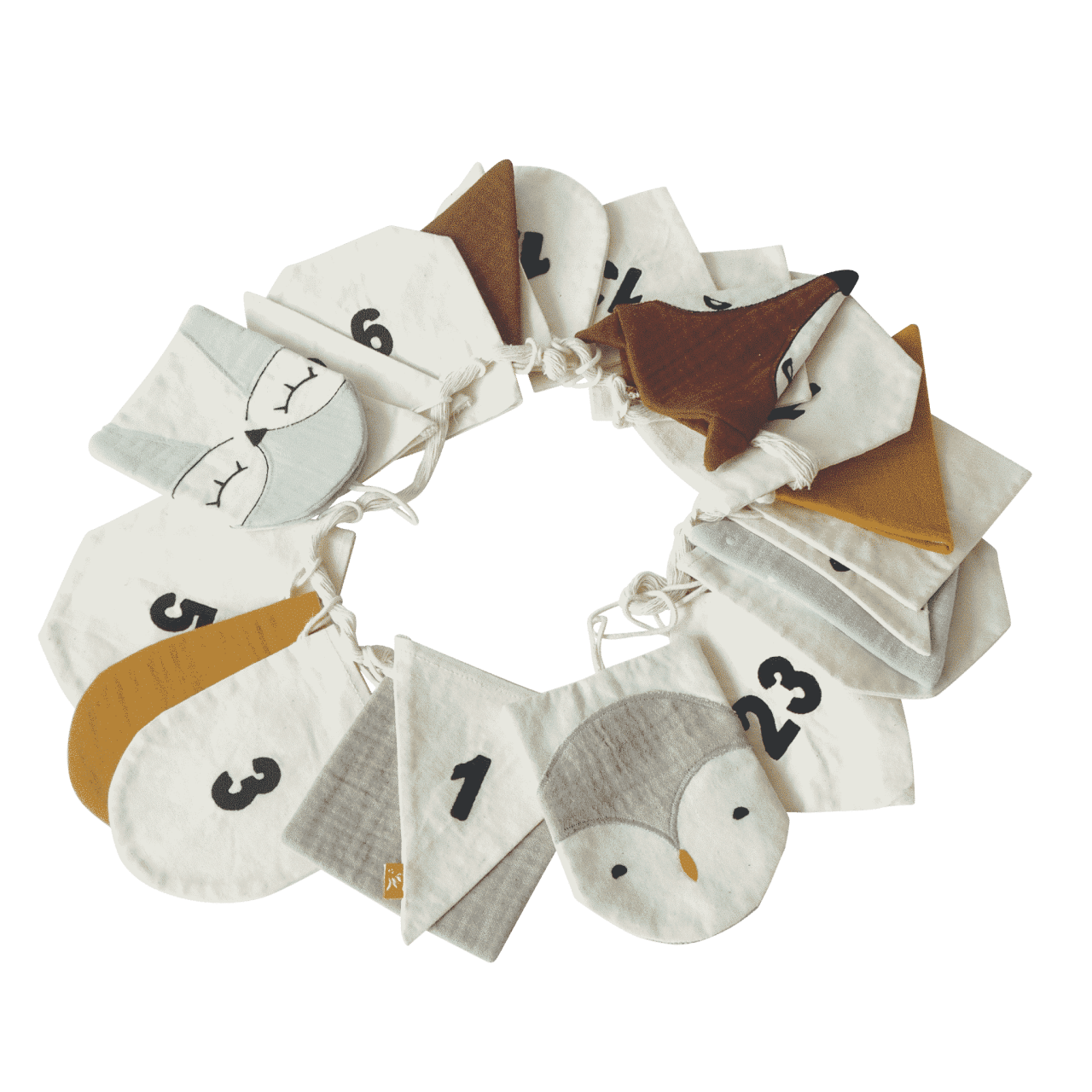 The beautiful Forest Friends Advent calendar from kikadu brings Christmas joy into your home—sustainable, playful, and reusable every year. The 24 fabric bags made of 100% organic cotton are just waiting to be filled with little surprises. With the adorable appliqués of a deer, owl, and fox, it's a real eye-catcher in any child's room.