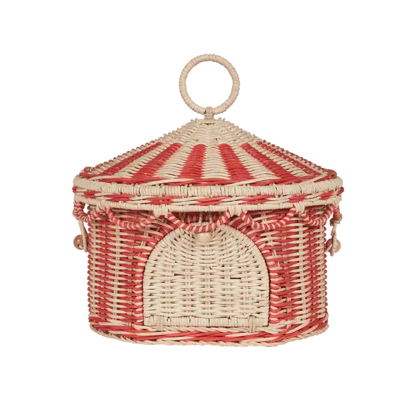 - Large toy basket/basket made of woven rattan in the shape of a circus tent with a removable lid.