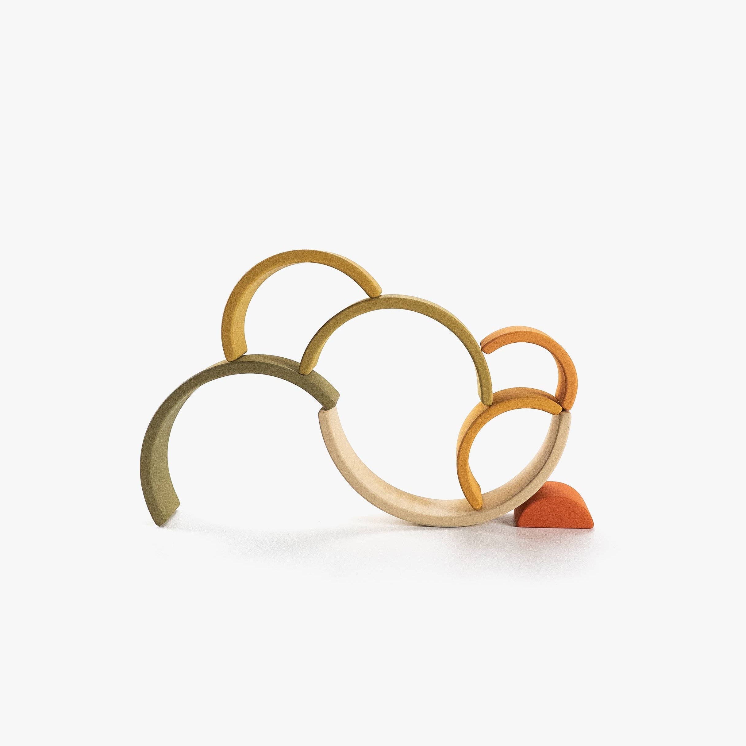 The mini wooden rainbow "Flower Meadow" is a lovingly designed summer toy in a handy size – perfect for little hands and big imaginations. With its minimalist design and soft, floral colors, it can be used in a variety of ways: as a puzzle, a building block, a tunnel, a bridge, or a creative decorative piece.