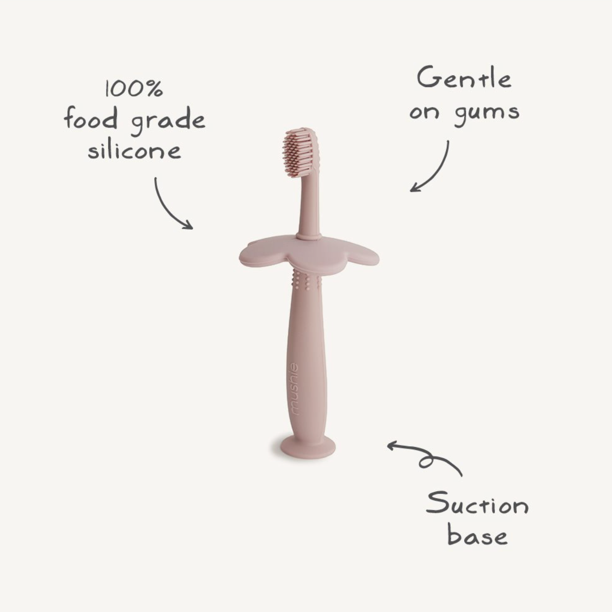 This playful toothbrush from Mushie provides little ones with a child-friendly introduction to independent tooth brushing. Building good hygiene habits starts early, and a training toothbrush can help children begin prioritizing oral hygiene. The toothbrush is made of 100% food-grade silicone and features super-soft bristles that gently clean and stimulate gums and teeth.