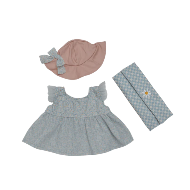 Whether for an imaginative picnic, a stroll through the market, or a berry hunt in the garden, the "Picnic Petal" clothing set dresses every Dinkum Doll stylishly for sunny adventures. With a floral dress, matching sun hat, and a checkered picnic blanket, little doll parents are perfectly equipped for stories that begin with "what if..."