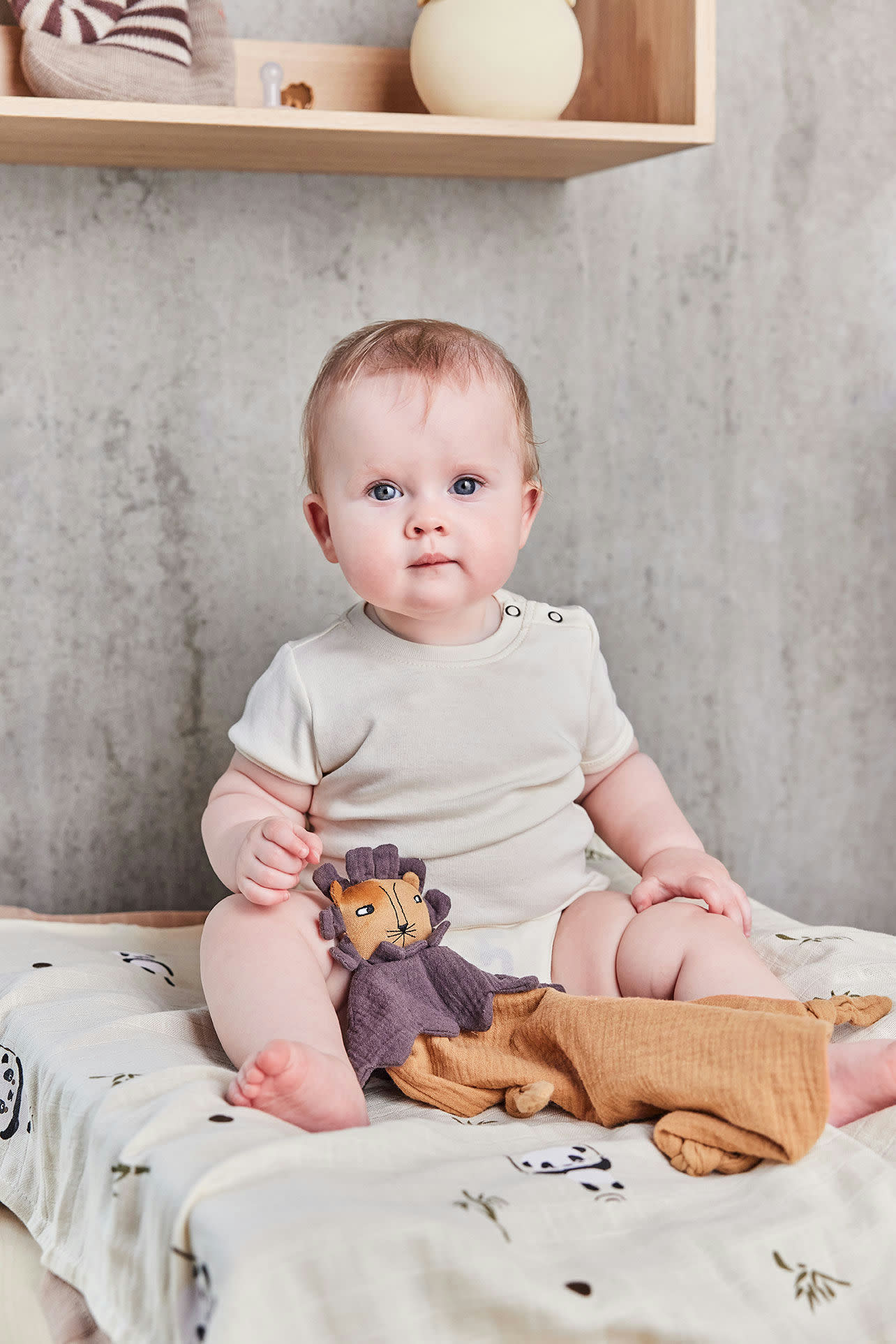 The Lobo Lion comforter from OYOY MINI brings warmth and security to any nursery with its friendly lion's mane. Made from 100% soft organic cotton , it's the ideal companion for babies from birth – for cuddling, comforting, and loving. The playful lion face puts little adventurers in a good mood and gently accompanies them to sleep.