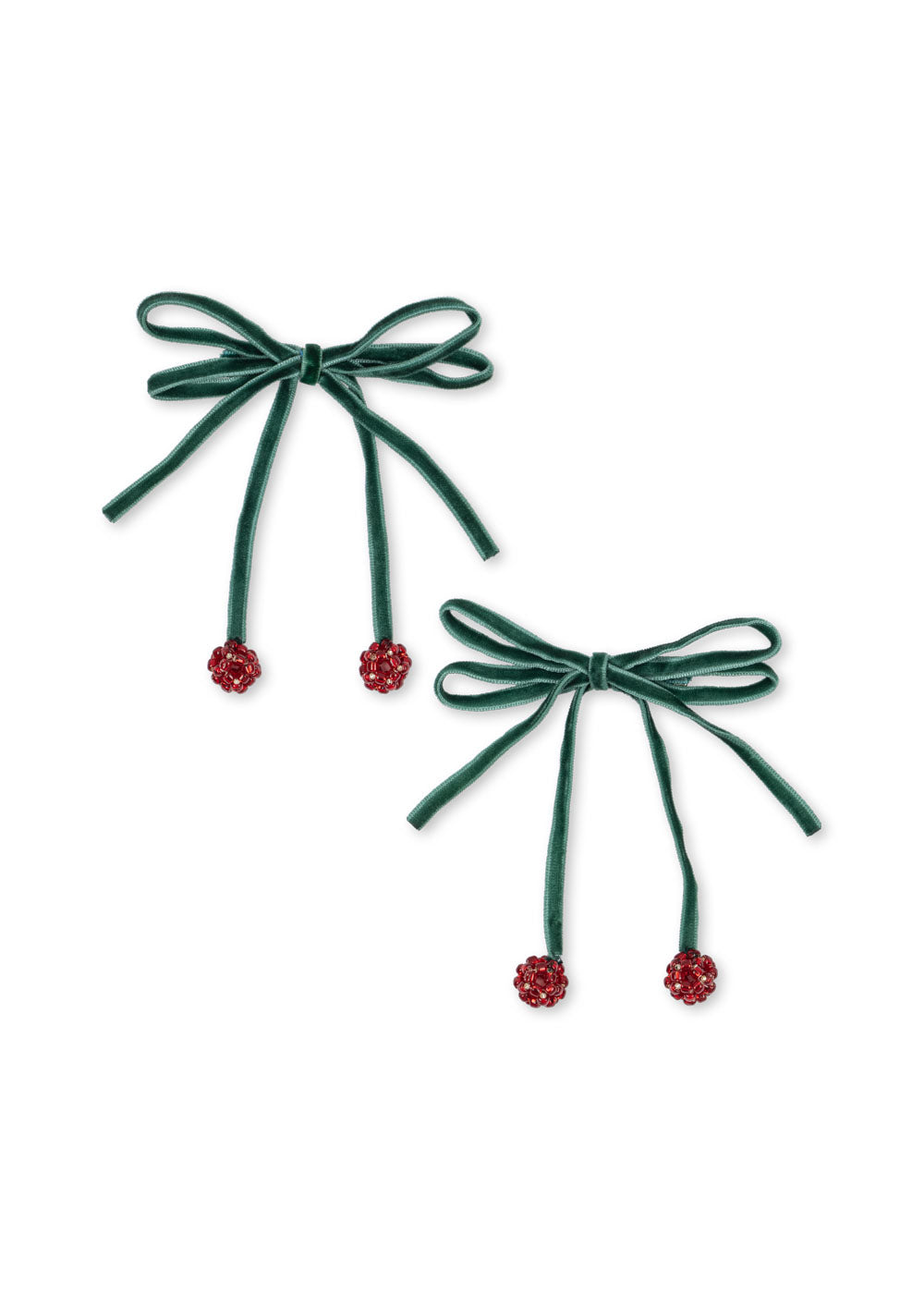 These enchanting bow-shaped cherry-themed hair clips made of sparkling glass beads are the perfect accessory for little fashionistas. They add playful highlights to the hair and brighten up any outfit—whether for a party, birthday, or everyday wear.