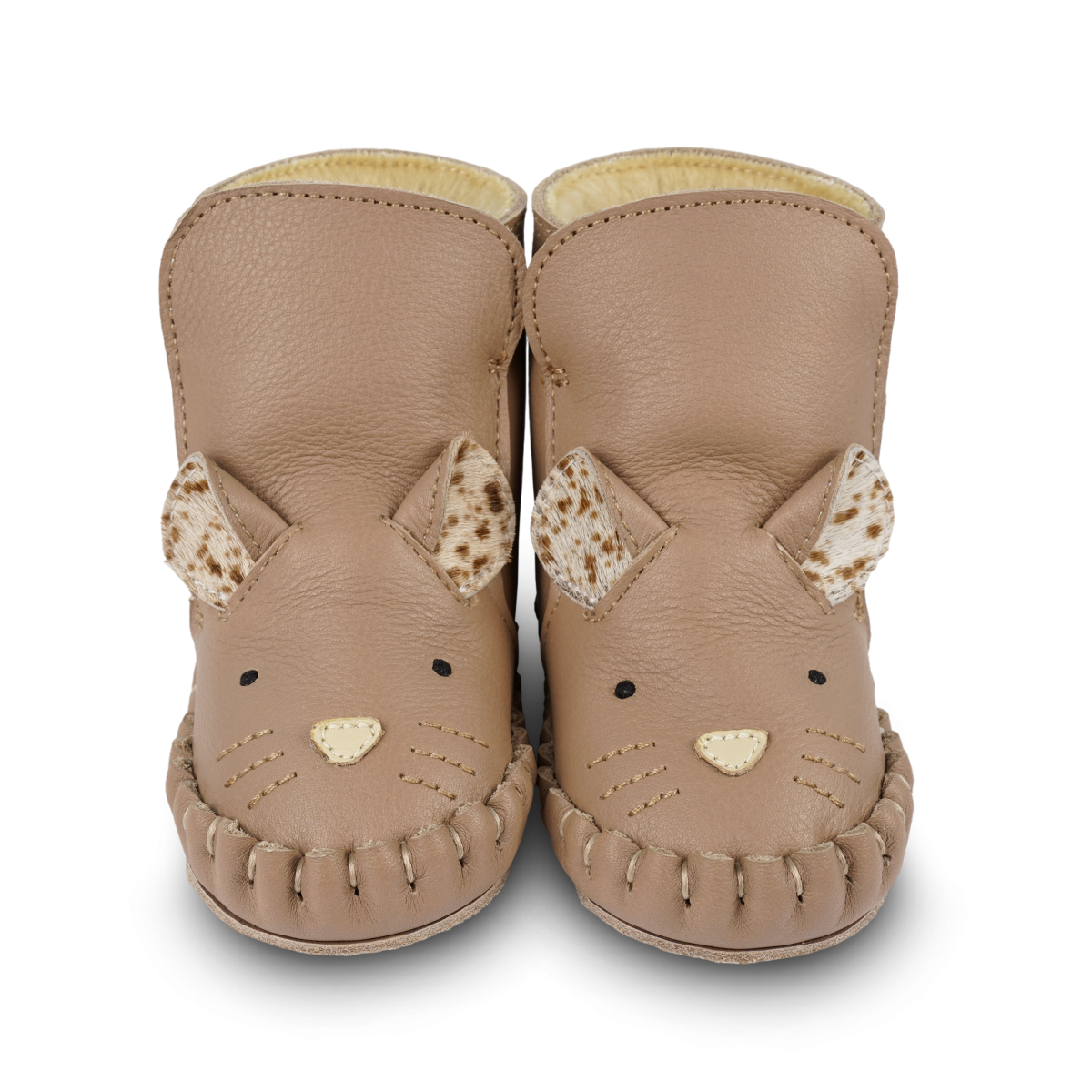Small, nimble, and adorable: The Kapi Classic "Mouse" boots from Donsje add charm and coziness to any winter outfit. With their delicate mouse ears and handcrafted details, they're a real eye-catcher. The soft leather exterior and warm lining provide comfort and protection, while the rubber sole (from size 12-24M) offers secure grip—perfect for little ones' first adventures.