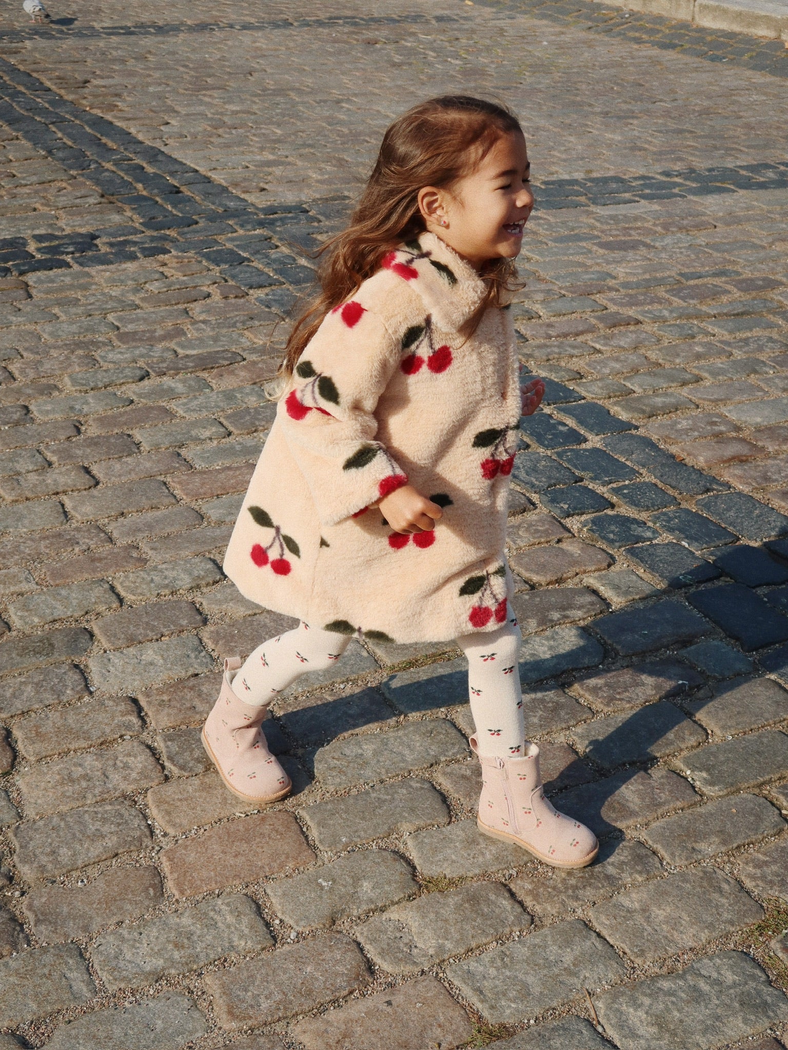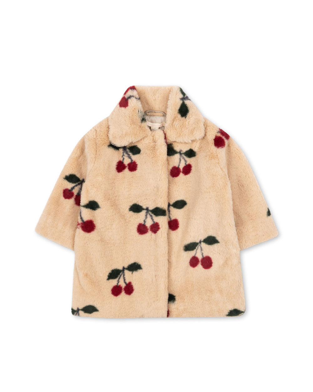 The Fuzzie Coat Ma Grande Cerise is the perfect companion for cold days. With its soft plush material, round collar, and practical snap fasteners, it combines coziness with a charming design. Side pockets offer space for small treasures or warm hands – a coat that playfully combines function and style.