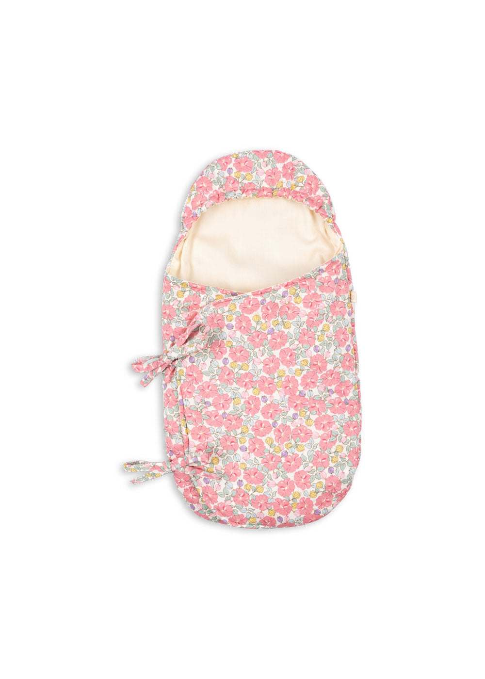 A functional diaper bag made from 100% organic cotton for all doll parents. The diaper bag has a large compartment on the outside. Designed with an adjustable shoulder strap and a convenient carry handle. The bag closes with a zipper. Matches the entire Konges Sloejd doll collection!