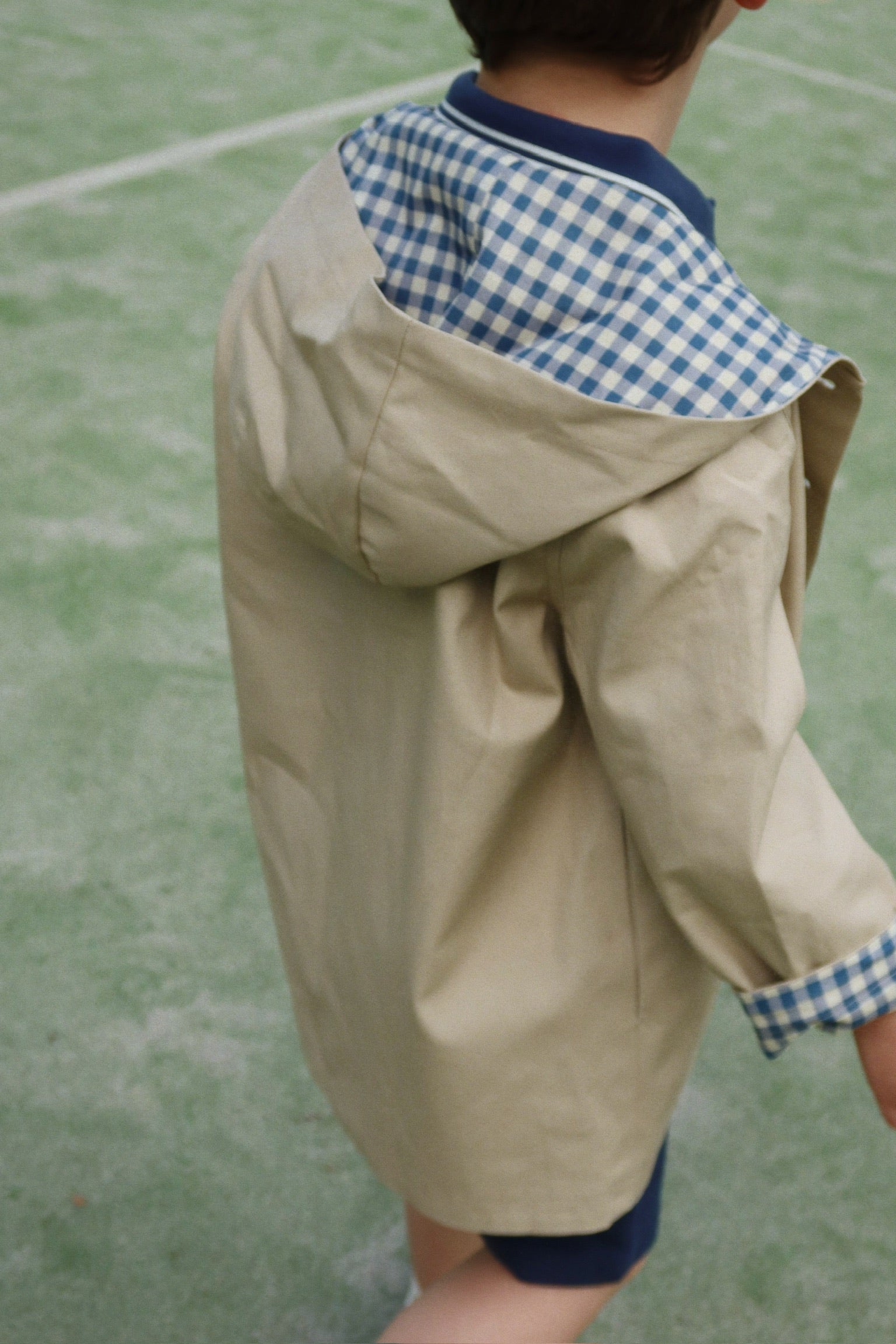 The Oxford Tan trench coat is a classic cotton coat with a straight collar, practical side pockets, and a full button placket. The checked lining and soft hood make it the perfect companion for transitional weather. A timeless must-have that can be beautifully passed down from generation to generation.