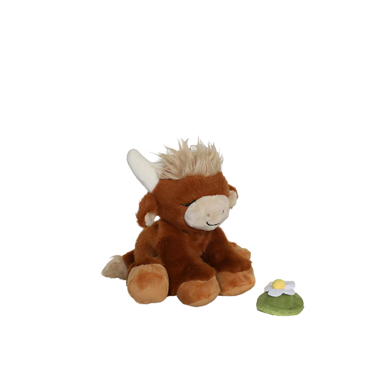 Binky Cow Gus is a lovable, chaotic Highland cow with a big heart – a cuddly friend made for comforting, playing, and companionship. With his magnetic mouth, Gus holds his flower pacifier (included), shares "kisses" with other magnetic friends, or grabs magnetic snacks for imaginative role-playing. Thanks to his flexible body and gentle weight, he feels especially high-quality – perfect for quiet cuddles and little adventures.