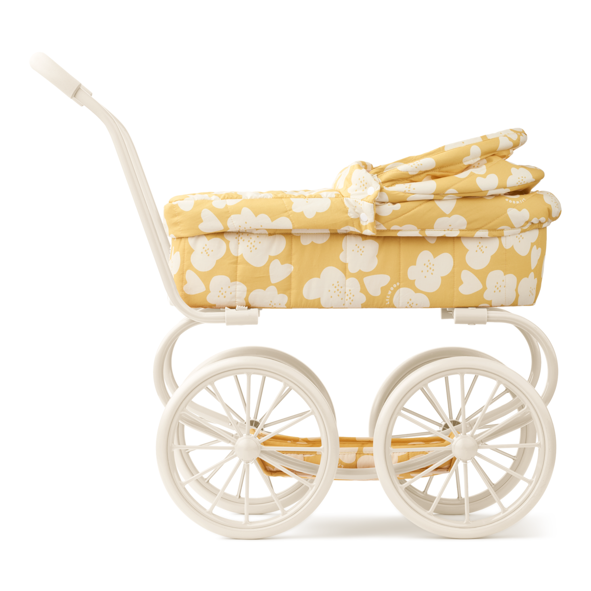The Adaline doll stroller by LIEWOOD brings classic style and child-friendly functionality to playtime. With its soft, quilted fabric and sturdy steel frame, it offers dolls and stuffed animals a comfortable ride and encourages imaginative play - alone or with friends.