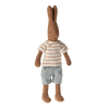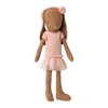 The famous Maileg rabbit is dressed as a ballet dancer. He's wearing a suit, a tulle skirt, and a headdress.