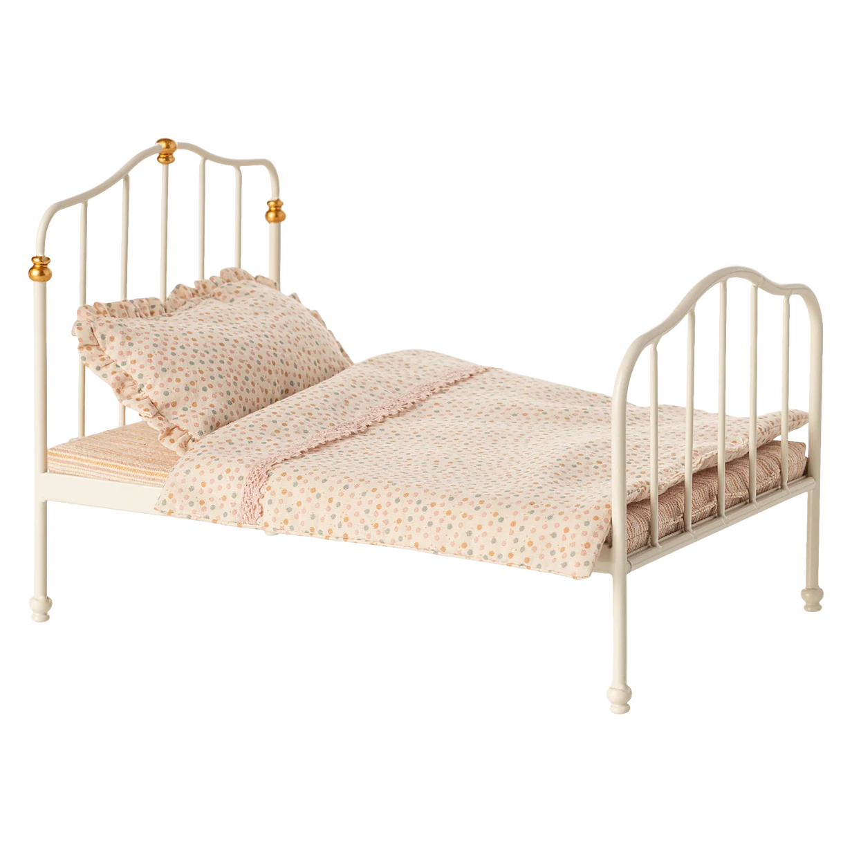 A perfect bed for a restful sleep. The bedding is made from beautiful Maileg fabrics—all different, but carefully selected to complete the look. This bed is suitable for the Mommy/Daddy Mice and the Grandma/Grandpa Mice.