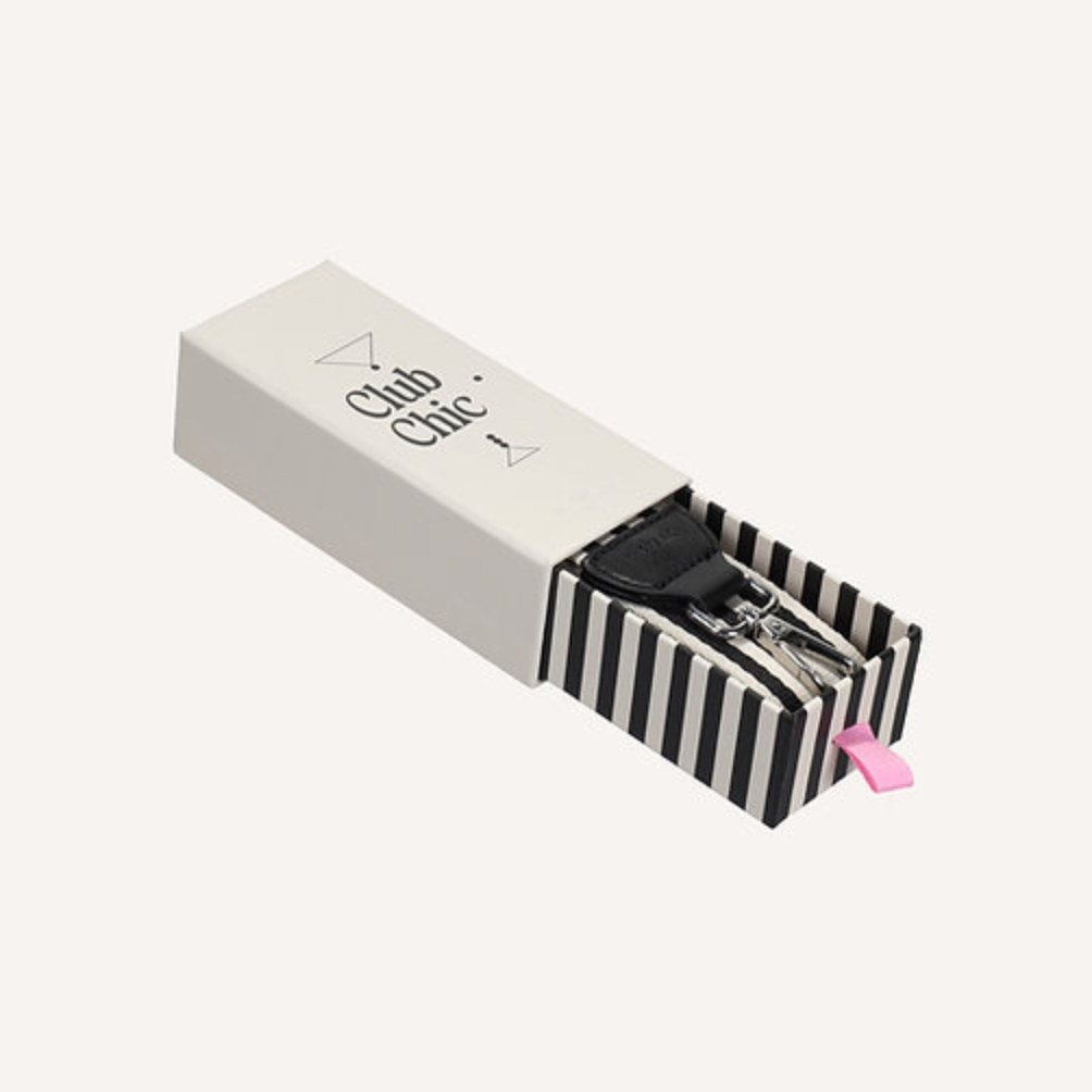 The Club Chic Stripes shoulder strap gives any bag a modern and unique look. Crafted from sturdy webbing with PU detail and silver buckles, it combines functionality with stylish design. The strap fits any shoulder bag or satchel and comes in a beautiful gift box—perfect for gifting.