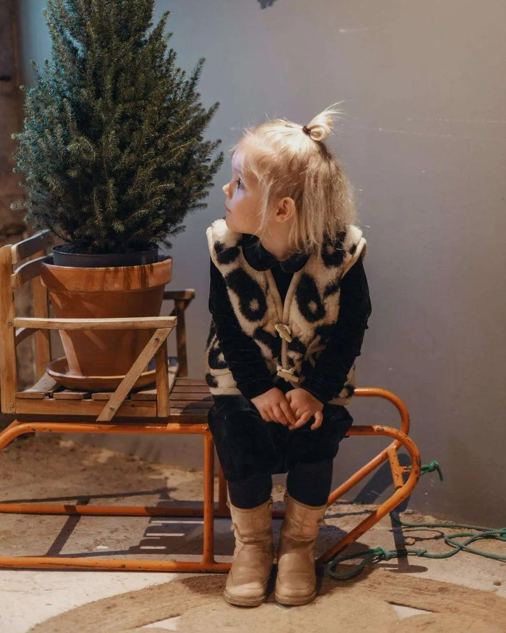 Die Wollweste Yin Yang für Kinder ist ein echter Hingucker für Herbst und Winter. Das auffällige Muster passt perfekt zur warmen, natürlichen Saisonstimmung und verbindet kuschelige Wärme mit einem einzigartigen Design – ideal als zusätzlicher Layer über Longsleeve, Hoodie oder Strick. Als limitierte Auflage ist dieses Modell besonders beliebt – für Muster-Liebhaber gibt es den Bodywarmer auch in einer Variante mit Giraffenmuster.