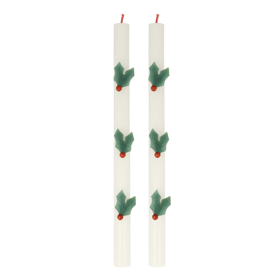 These ivory table candles are a stylish statement for any festive table. Decorated with sculpted red wax ribbons and hand-painted pale pink stripes, they're sure to draw attention. The red wicks add a special touch and make the candles a decorative highlight—whether on the dining table, by the fireplace, or as a charming gift.