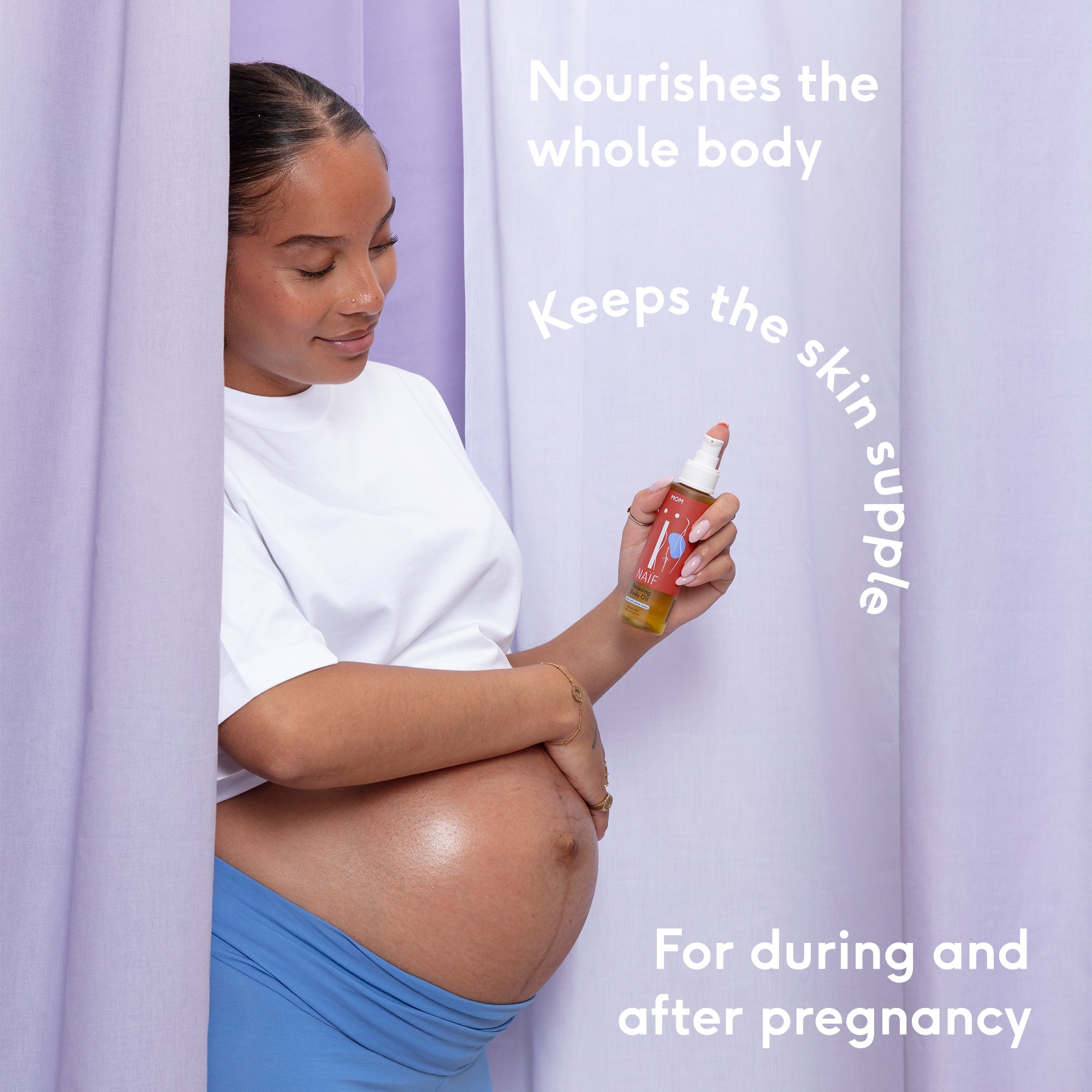 Hurray, your body is doing a great job! During pregnancy, your body changes and needs special care. With the Naïf pregnancy oil, you can gently fight dry skin, itching and feelings of tension. The oil provides your skin with everything it needs to stay supple and elastic. Thanks to natural oils from coconut, grape seed and jojoba, the skin is intensively cared for - without any parabens, alcohol or essential oils that could irritate it.