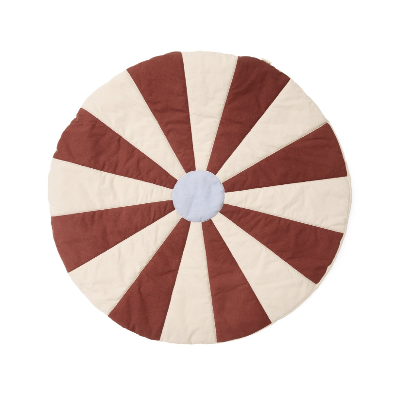 The Circus playmat from Kids Concept is a round, quilted play mat in vibrant red – softly padded and ideal for everyday life with babies and children. With its graphic , circus-inspired pattern on the front, it adds a beautiful accent to any child's room, while the reverse remains a simple, solid white . Whether used as a play island on the floor, under a baby gym , or as a cozy reading nook in the living room, this round playmat is versatile and provides a comfortable, lightly padded surface.