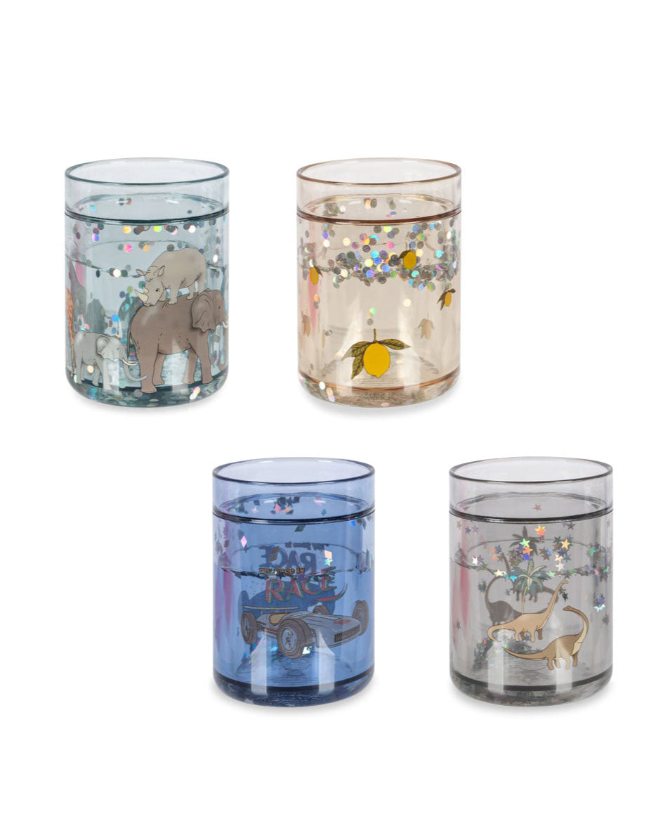 Discover the 2-pack of glitter drinking cups from Konges Slojd in a shiny dinosaur design. Made from high quality PCTG, PET and distilled water, they have a standard size of Ø 6.5 cm x H 9 cm. Enchant your little guests with a sparkling taste experience!