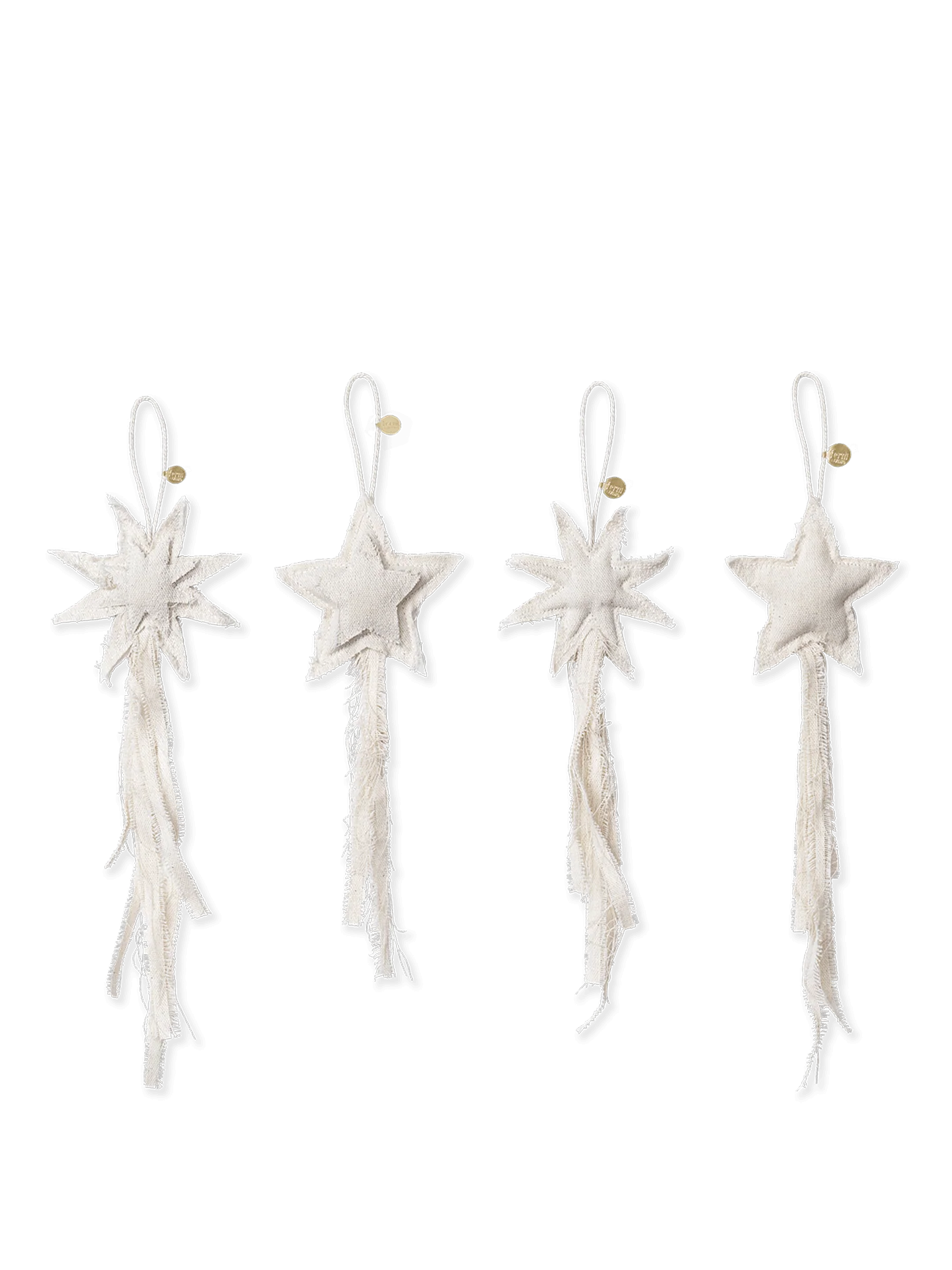The Vela Star ornaments bring artisanal nostalgia and simple elegance to the Christmas season. Crafted from natural cotton canvas, they are reminiscent of lovingly crafted decorations of days gone by. Each star features an appliquéd star outline in the center, softly filled with recycled polyester, and deliberately frayed edges for a tactile, casual appearance. Whether on the Christmas tree, on a decorative branch, or as small accents in the home, the Vela Stars create a warm, natural festive atmosphere.