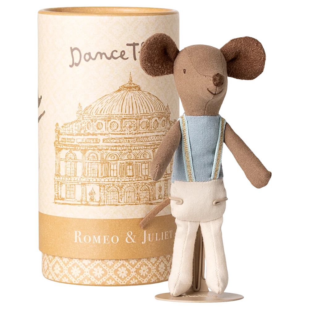 A real ballet dancer. The mouse comes in a beautiful tube with a stand inside, which you can use if you want to display the dancer at home.
