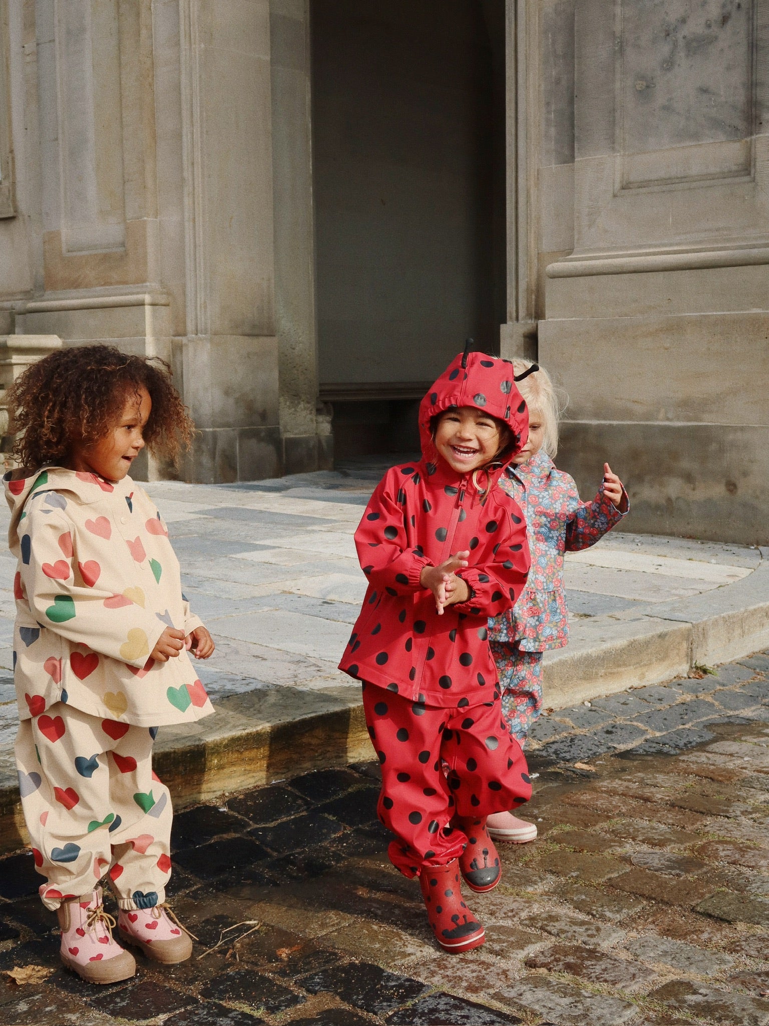 Ready for adventure – whatever the weather: The Cinelle rain set in Lady Dot is the perfect companion for wet kindergarten days and wild muddy moments. Windproof, waterproof, and pleasantly lightweight, it reliably protects against rain and wind. Thanks to taped seams, an elastic waistband, and practical cuffs, everything stays dry – even over rubber boots and gloves.