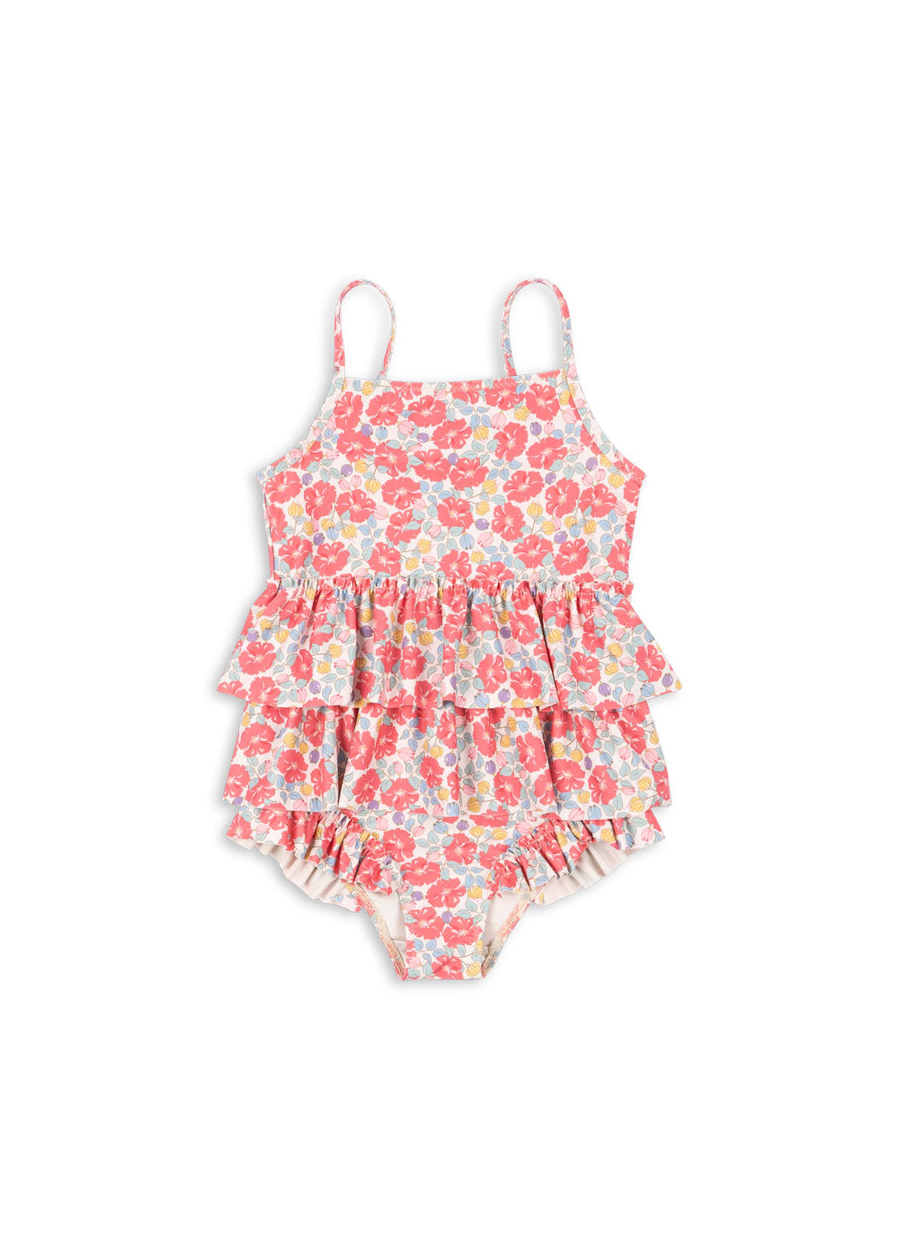 The Coeur Fleur Anglaise sun hat is a magical accessory for sunny days! With its wide brim and playful, wavy edges, it offers optimal protection from the sun. The practical ties ensure a secure hold, while the delicate design made of 100% organic cotton ensures maximum comfort.
