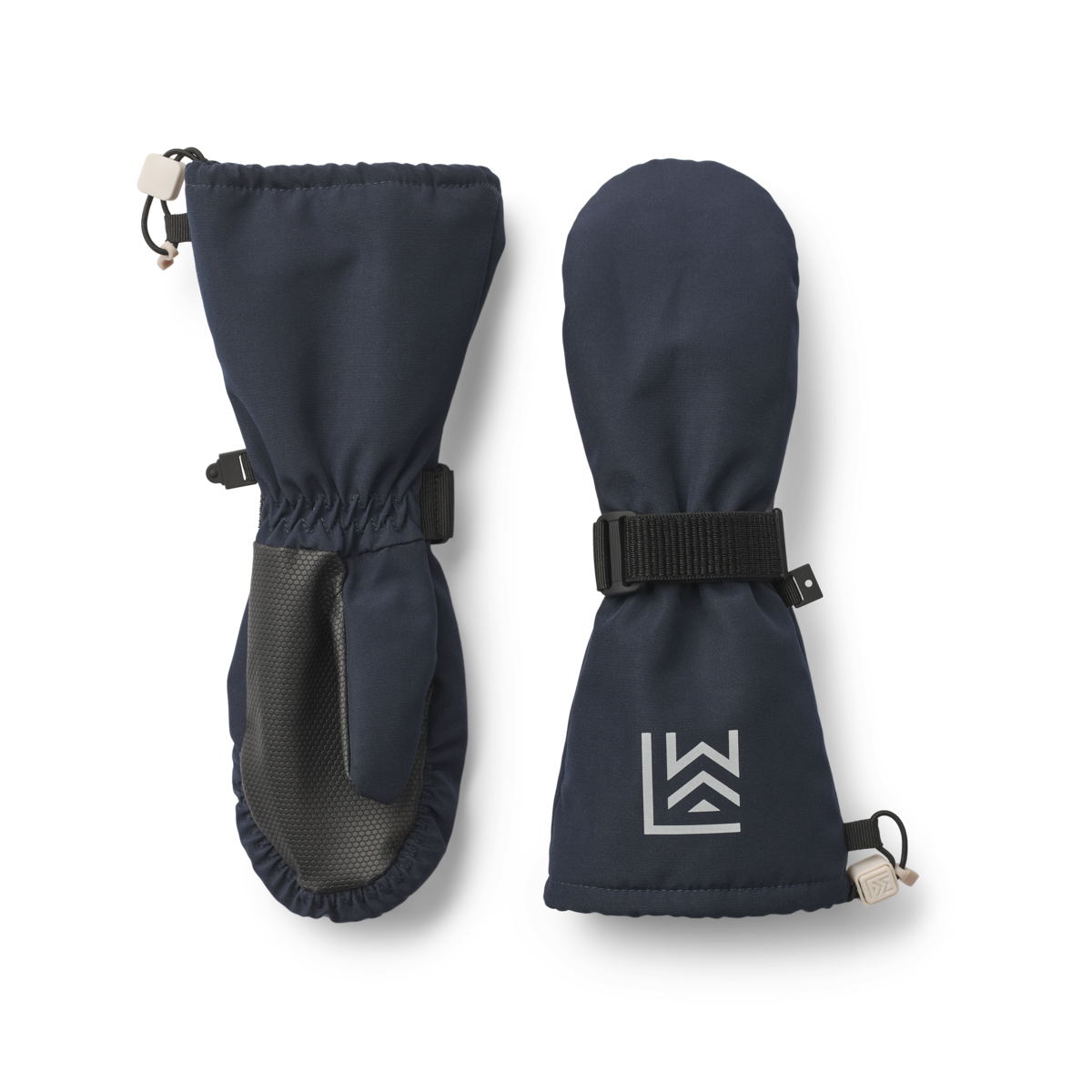 The Fallon mittens from Liewood are practical winter gloves for active children's hands. The soft fleece lining keeps them pleasantly warm, while long cuffs with adjustable closures reliably protect against the cold. Thanks to elastic wrist straps with safety fasteners, the gloves won't get lost and can be quickly opened in an emergency. Reinforced palms also ensure better grip and high durability – perfect for snow adventures and winter playground days.