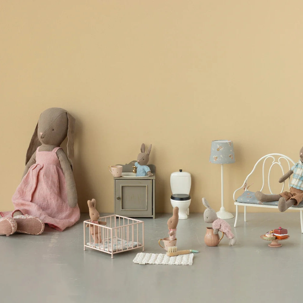 Dieser süsse Laufstall ist perfekt für Dein Baby, die Größe passt zu allen Freunden in Größe MY. Der Laufstall ist aus Metall und in einem weichen cremefarbenen Ton lackiert. Im Boden befindet sich eine weiche Matte.