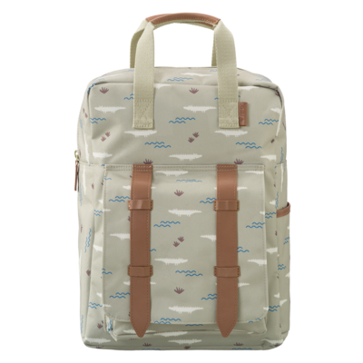 Fresk's large backpack is carefully crafted from recycled PET bottles. This cute-looking backpack features multiple compartments for safely storing all your essentials, including a snack box for daycare and field trips. Inside, there's a separate compartment for carrying a water bottle upright. The front pocket conveniently closes with a magnetic snap, while the main compartment has a zipper. This backpack also features convenient carrying handles and adjustable shoulder straps.
