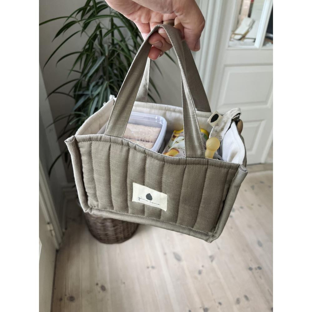 Die Herman Aufbewahrungstasche ist ein kleiner Ordnungshelfer, den man schnell nicht mehr missen möchte: Perfekt neben der Wickelauflage für Pflegeprodukte und Zubehör – oder unterwegs für Snacks, kleine Spielsachen und Essentials. Zwei praktische Aussentaschen helfen beim Sortieren, während das gesteppte Design aus Bio-Baumwolle schön stabil steht und überall gut aussieht.