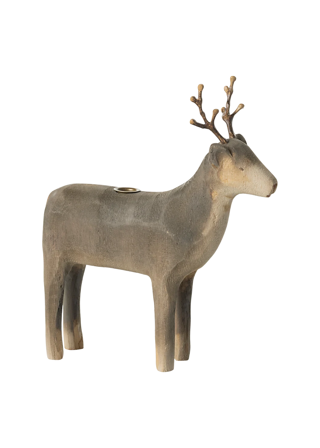 The wooden decoration collection has been expanded. The deer come with metal antlers and a beautiful finish. It is hand-painted and can vary in color tones - just like a real deer. Candles with a size of Ø1.2 cm fit.