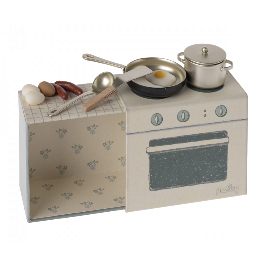 A nice play set from Maileg with a cooking mouse, soup pot and spoon. Make dinner a breeze with this cute set. Combine with the Maileg kitchen collection and miniature food to keep the story going.