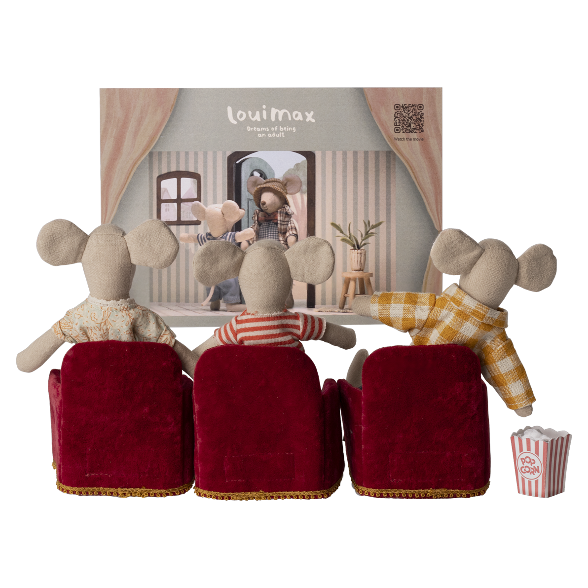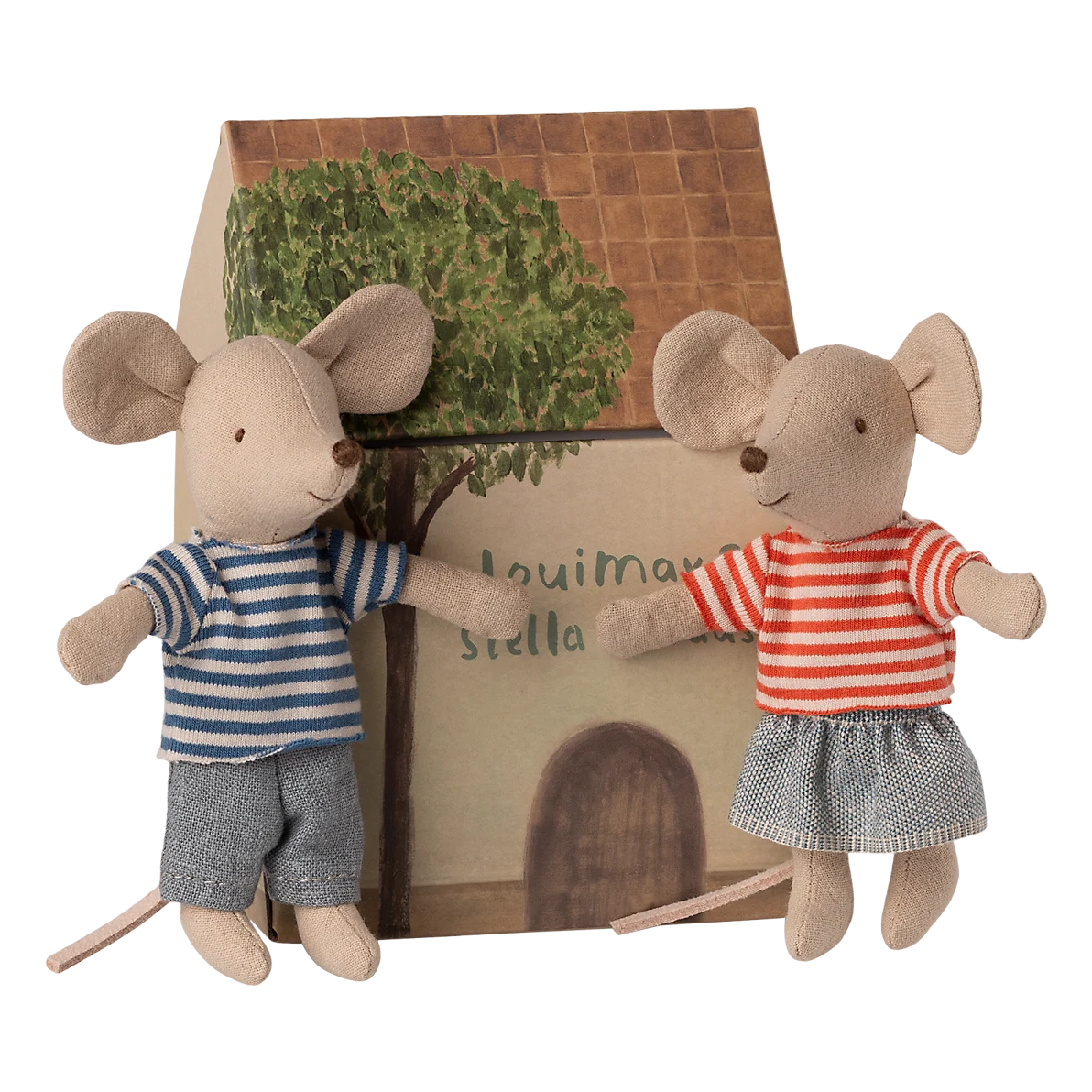 This mouse is called LouiMax and is a really adventurous guy. He wears a blue striped shirt and jeans. The mouse has magnets in his hands and is sold in a nice box. The mouse is the size of his big brother.