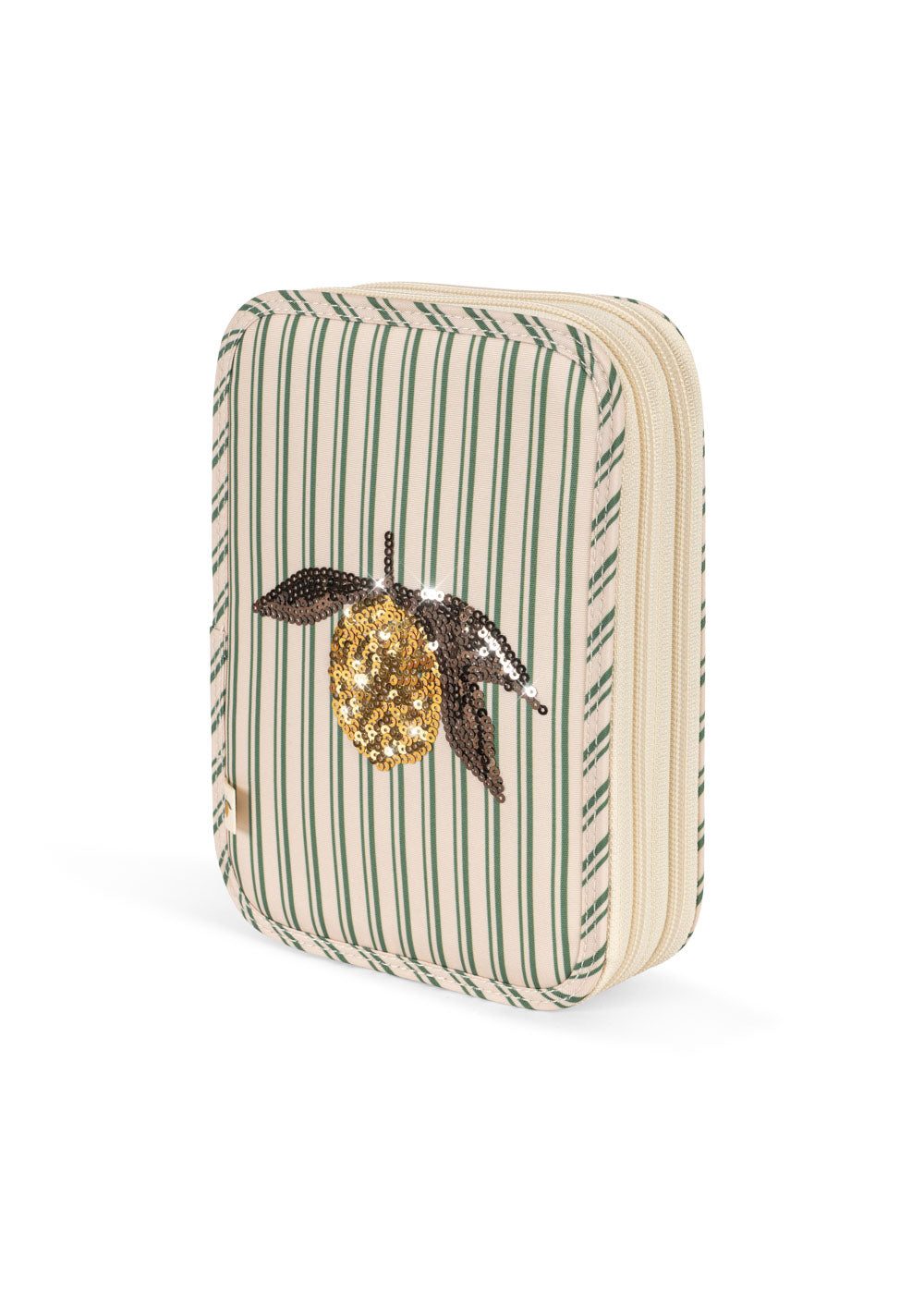 This two-piece set, consisting of a lunch box and a drinking bottle in the distinctive lemon design, is the perfect companion for kindergarten, school, or field trips. The two pieces complement each other perfectly, ensuring that snacks and drinks can be safely stored and easily transported.