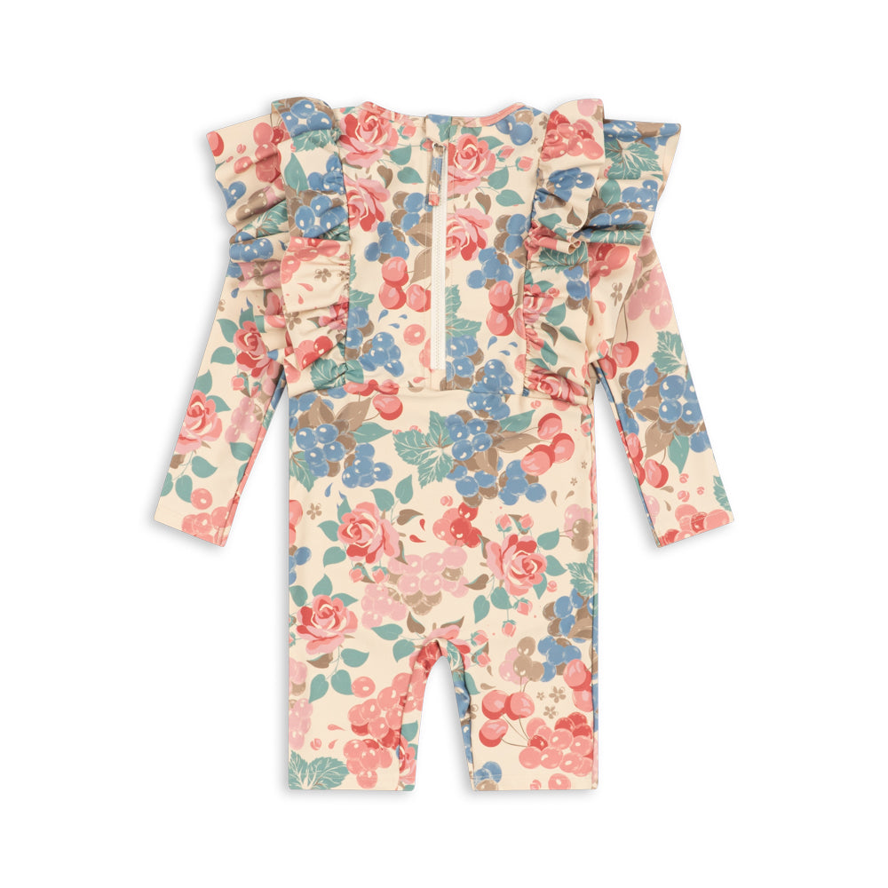 The Manuca ruffle swimsuit by Konges Sløjd combines playful design with the highest UV protection. The long sleeves and UPF 50+ protection ensure that sensitive children's skin is reliably protected from the sun. The delicate ruffle details give the swimsuit a particularly sweet touch, while the elastic material ensures a perfect fit and high wearing comfort.