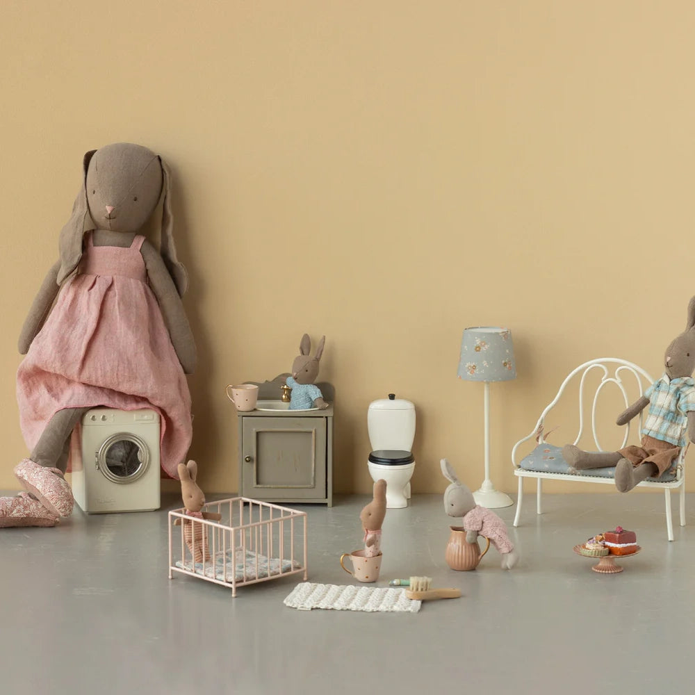Diese wunderschöne Miniatur-Stehlampe ist ein Muss. Die Lampe erleuchtet den Raum mit einem sanften Lichtton – denk daran, sie auszuschalten, wenn alle schlafen. Die Lampe wird ohne Batterie geliefert, füge eine Knopfzellenbatterie (CR2032) hinzu.