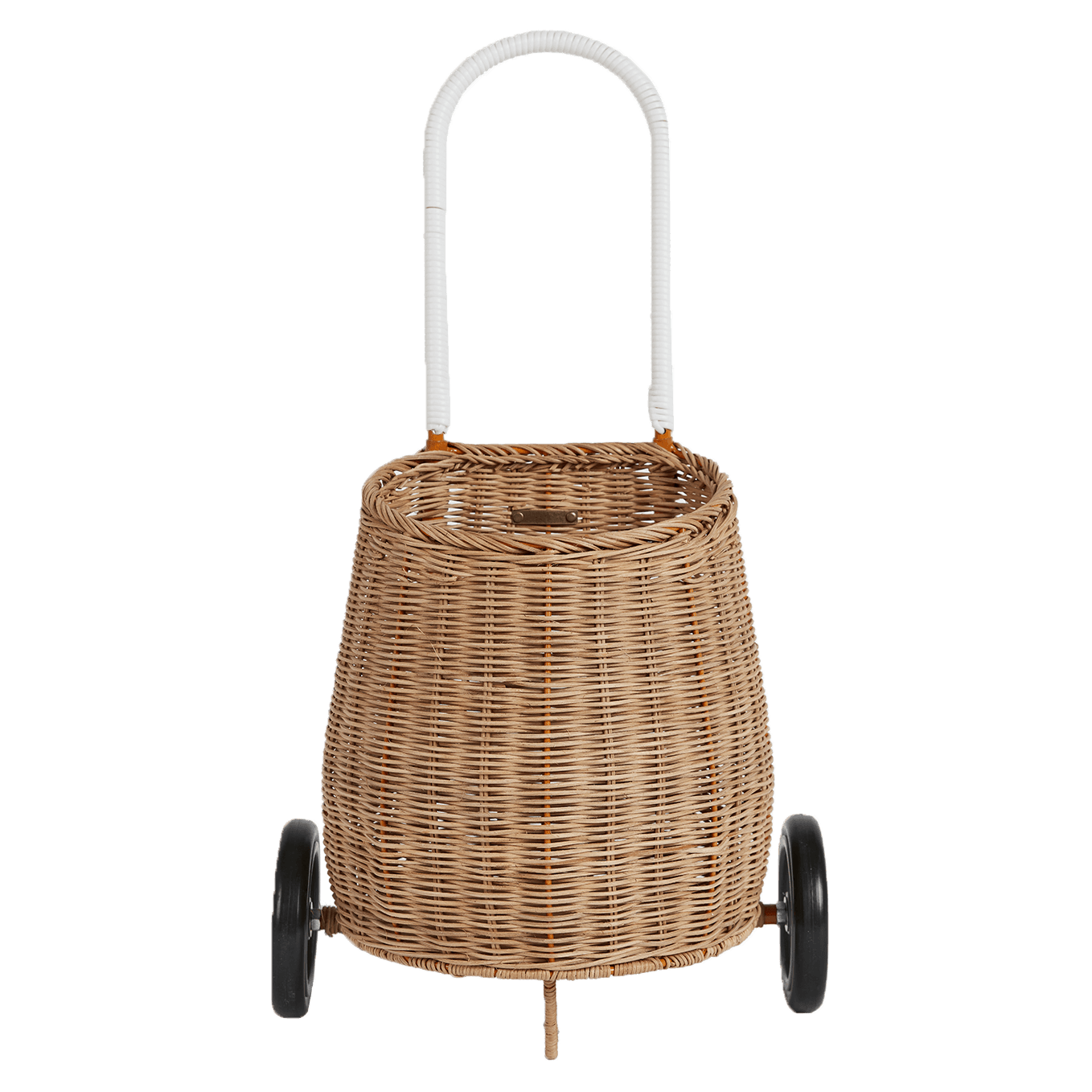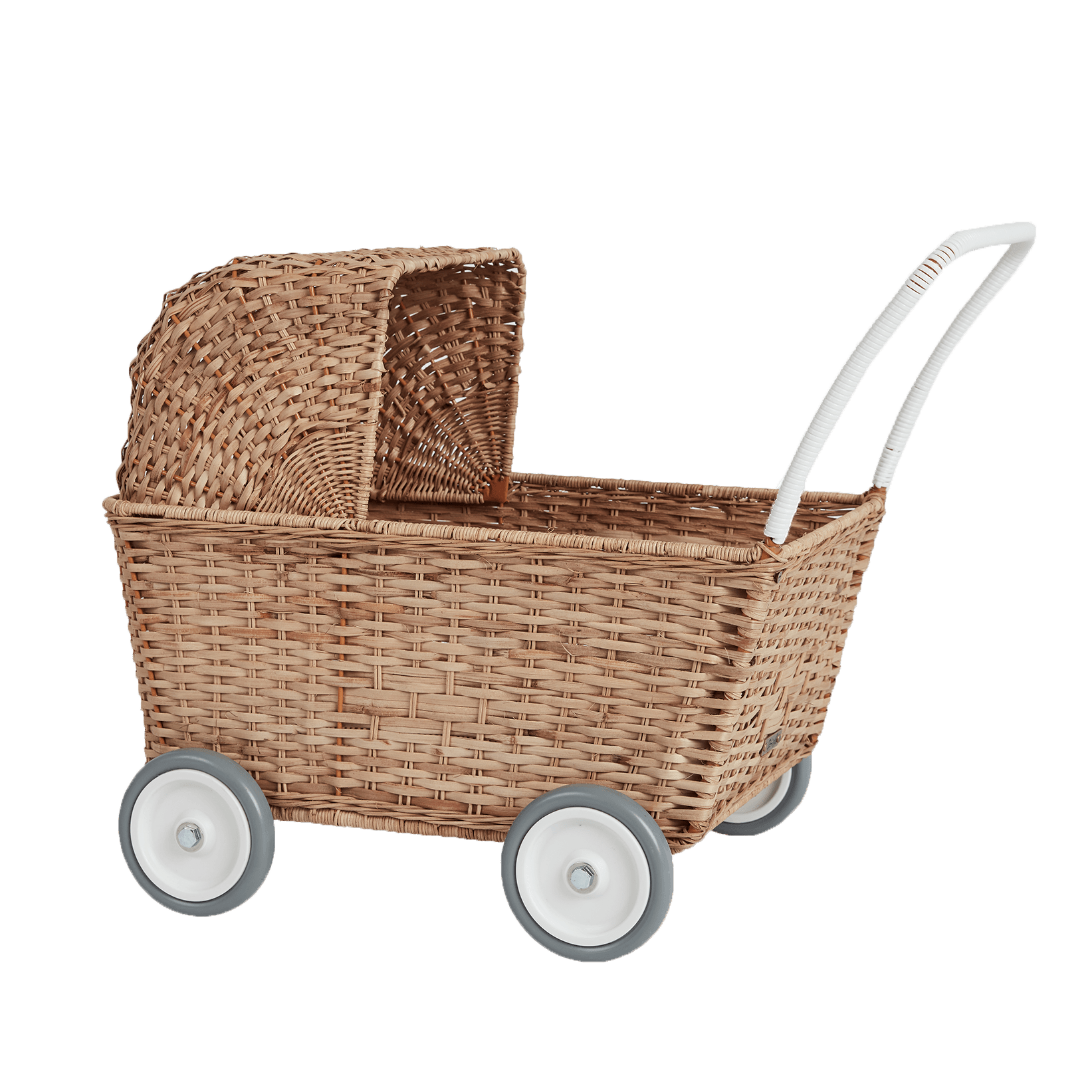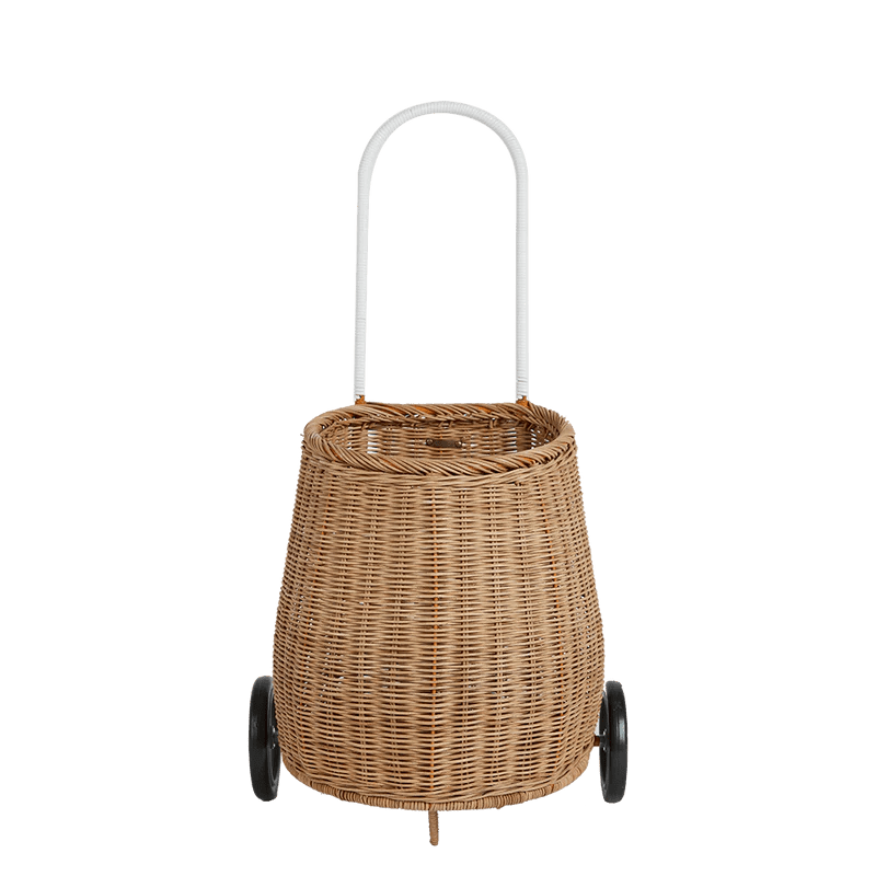 The Wonder Wagon is handcrafted from rattan in a natural tone and designed to last. It features a lightweight metal frame for strength and durability, recycled plastic wheels and a bamboo handle so little hands can pull the Wonder Wagon with ease.