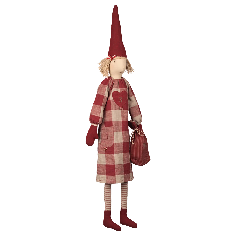 December is full of family traditions, and this calendar could be the next one. The calendar has four rings/pockets for attaching treats—for the last four Sundays before Christmas. The Pixy has a strap at the neck for hanging.