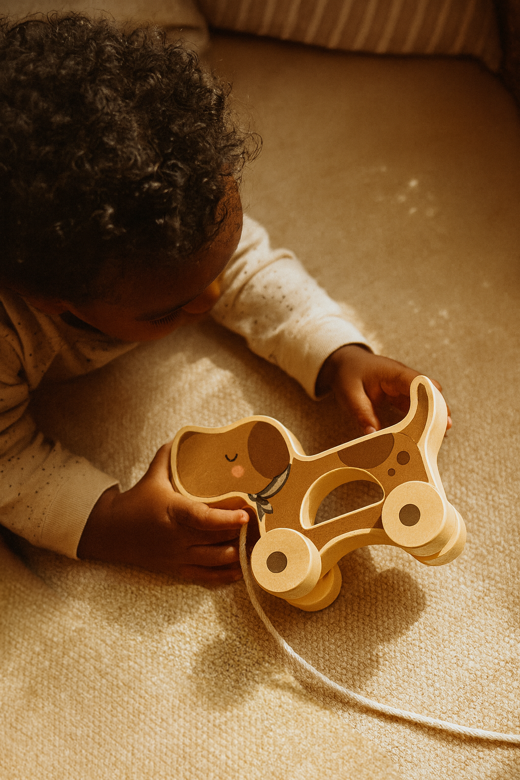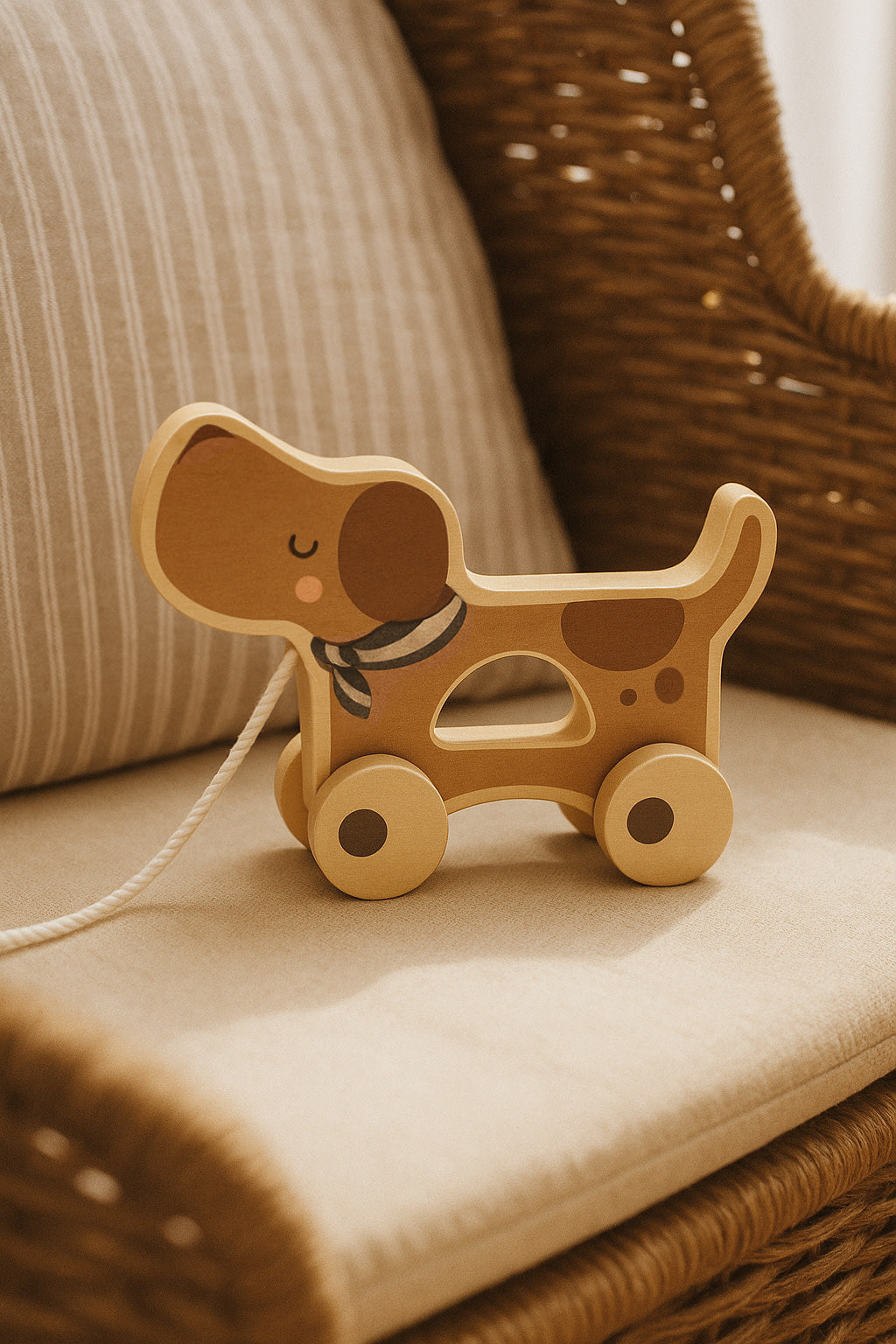 Poppy ist ein herziges Holz-Hündchen, das überall mit hinwackelt, wohin dein Kind geht. Mit seinen leicht laufenden, glatten Rädern und dem freundlichen Gesicht ist es der perfekte Begleiter für erste Schritte und fantasievolle Spaziergänge durchs Kinderzimmer. Ein wunderschönes Spielzeug, das Bewegung spielerisch fördert und dabei einfach Freude macht.