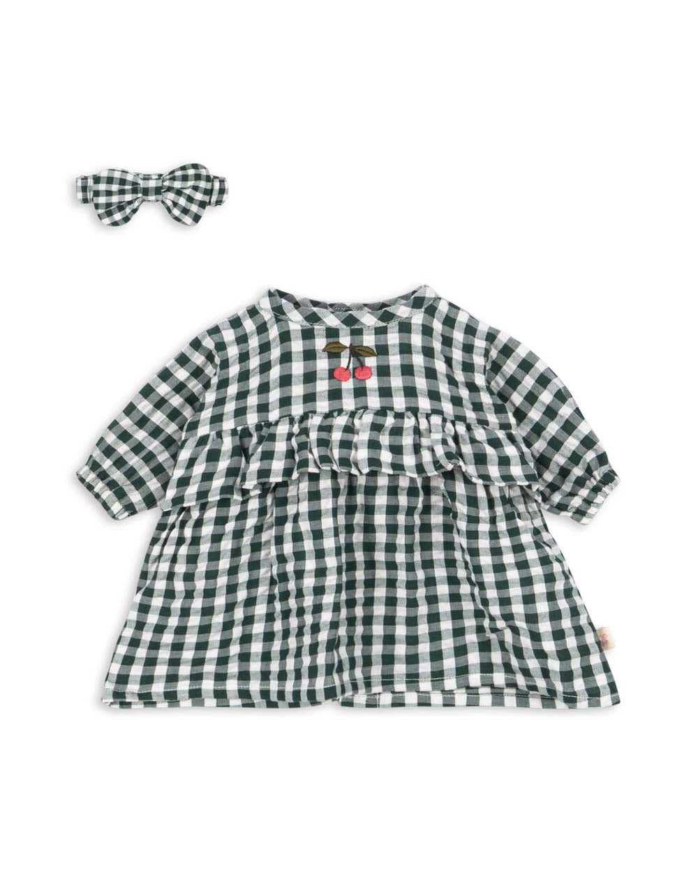A cute padded doll bed linen made from 100% organic cotton with soft piping. The bed linen comes in a matching fabric carrying bag with a drawstring closure. Matches the entire Konges Sloejd doll collection!