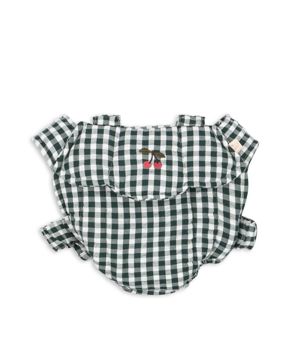 A functional diaper bag made of 100% organic cotton for all doll parents. The diaper bag features a large compartment on the outside. Designed with an adjustable shoulder strap and a practical carrying handle, the bag closes with a zipper. Matches the entire Konges Slojd doll collection!