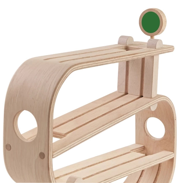 Ready, set, go! With the PlanToys racetrack , the cars zoom down the track at breakneck speed – and every race brings new excitement. Watching which car rolls the farthest playfully promotes hand-eye coordination, fine motor skills, and concentration. A classic wooden toy in high-quality construction that will delight children time and time again.
