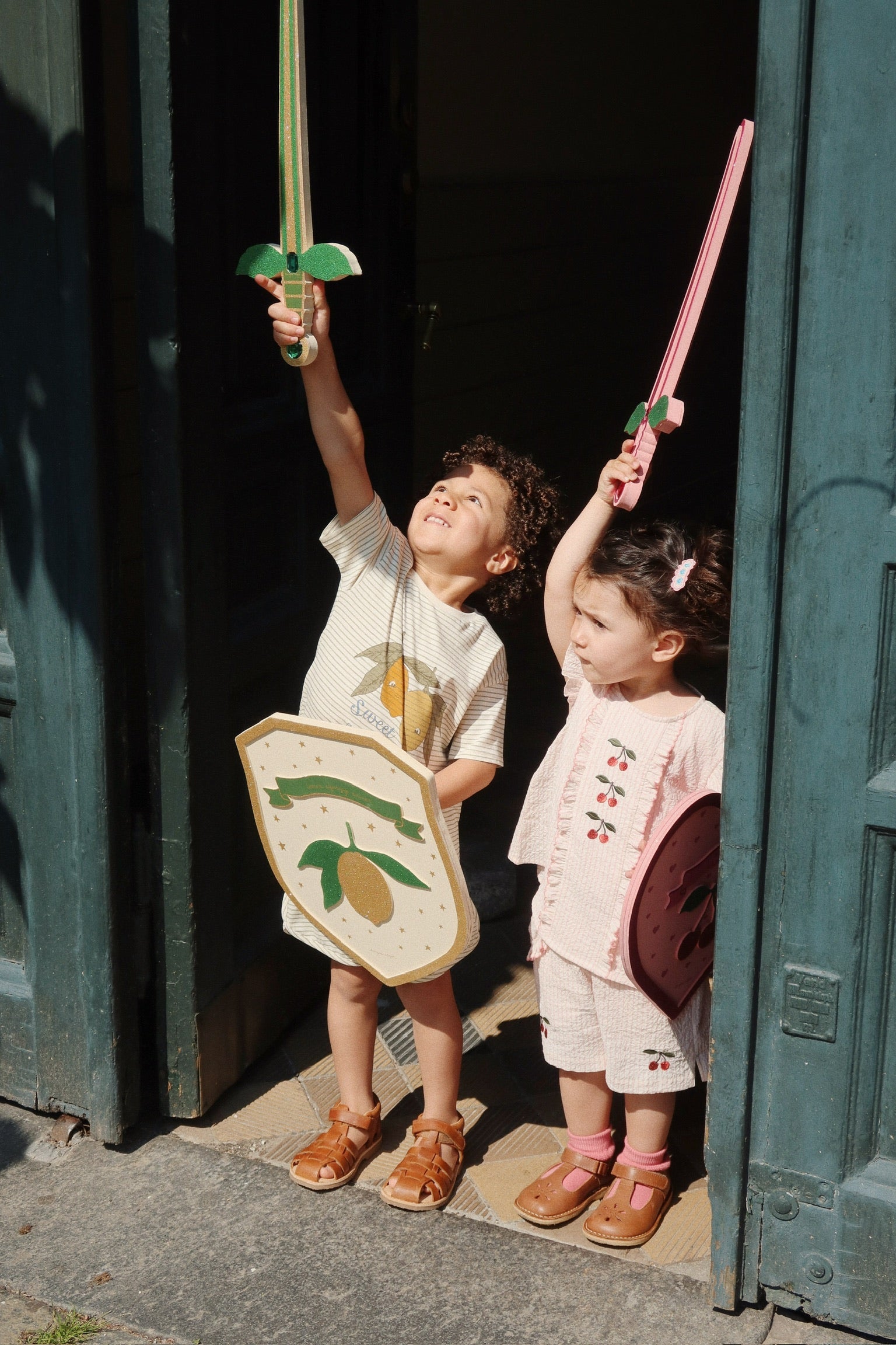 The Knight's Sword & Shield Set Midnight Navy by Konges Slojd is ideal for little knights and princesses who like to immerse themselves in imaginative adventures.