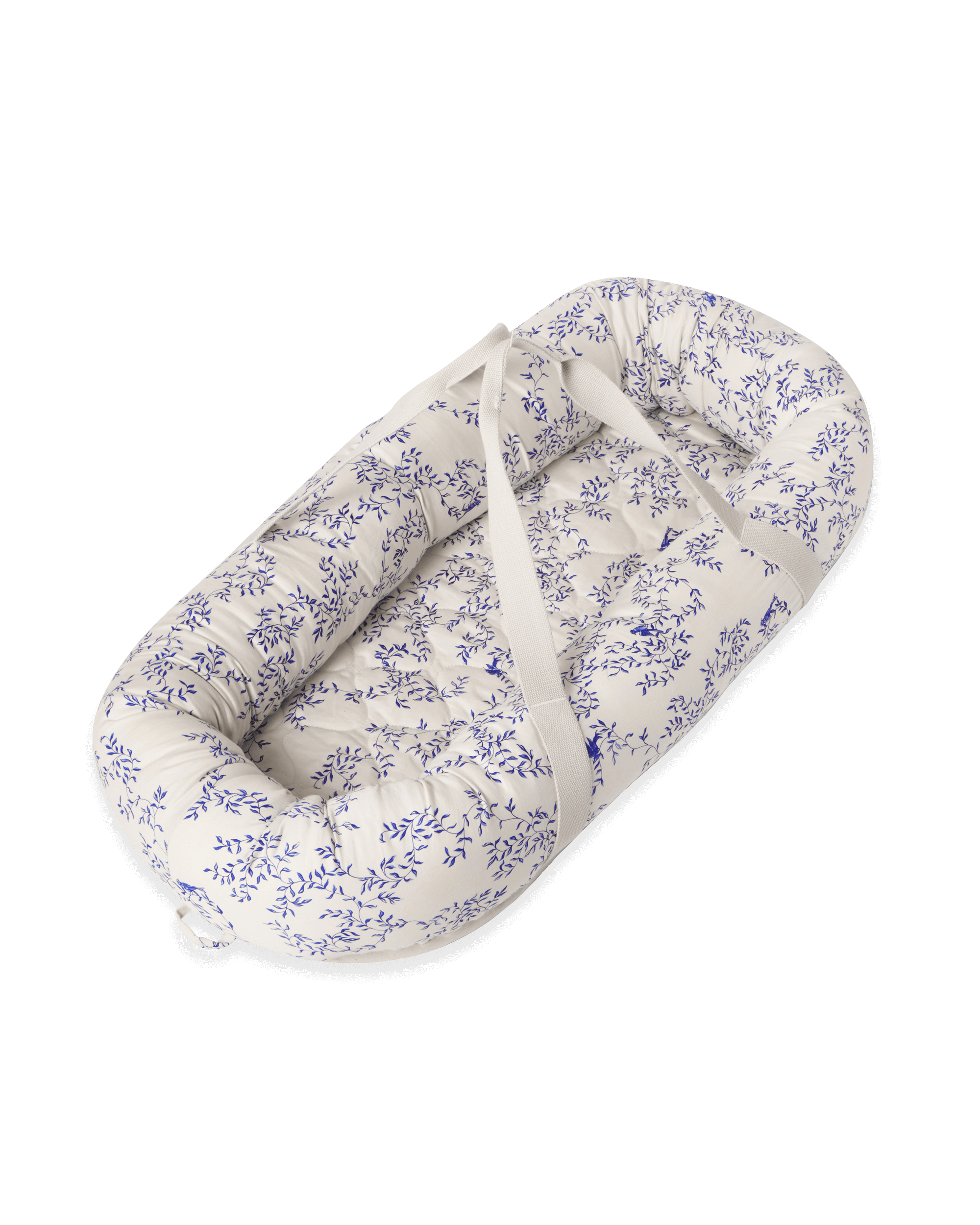 A portable baby nest is perfect for a newborn as the nest creates a cozy and comfortable environment that you can easily and safely transport from room to room. The baby nest is made of durable organic cotton sateen with durable straps, a quilted base as well as a soft foam mattress that sits on a sturdy, lightweight board. The cover has a hidden zipper at the bottom so it can be easily removed for washing. Tested according to EN 1466:2023 and therefore meets the European safety standard for baby lifts. Please read the user manual carefully before use and keep it for future reference.