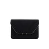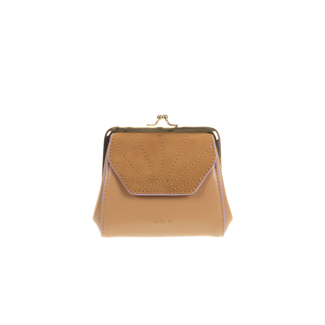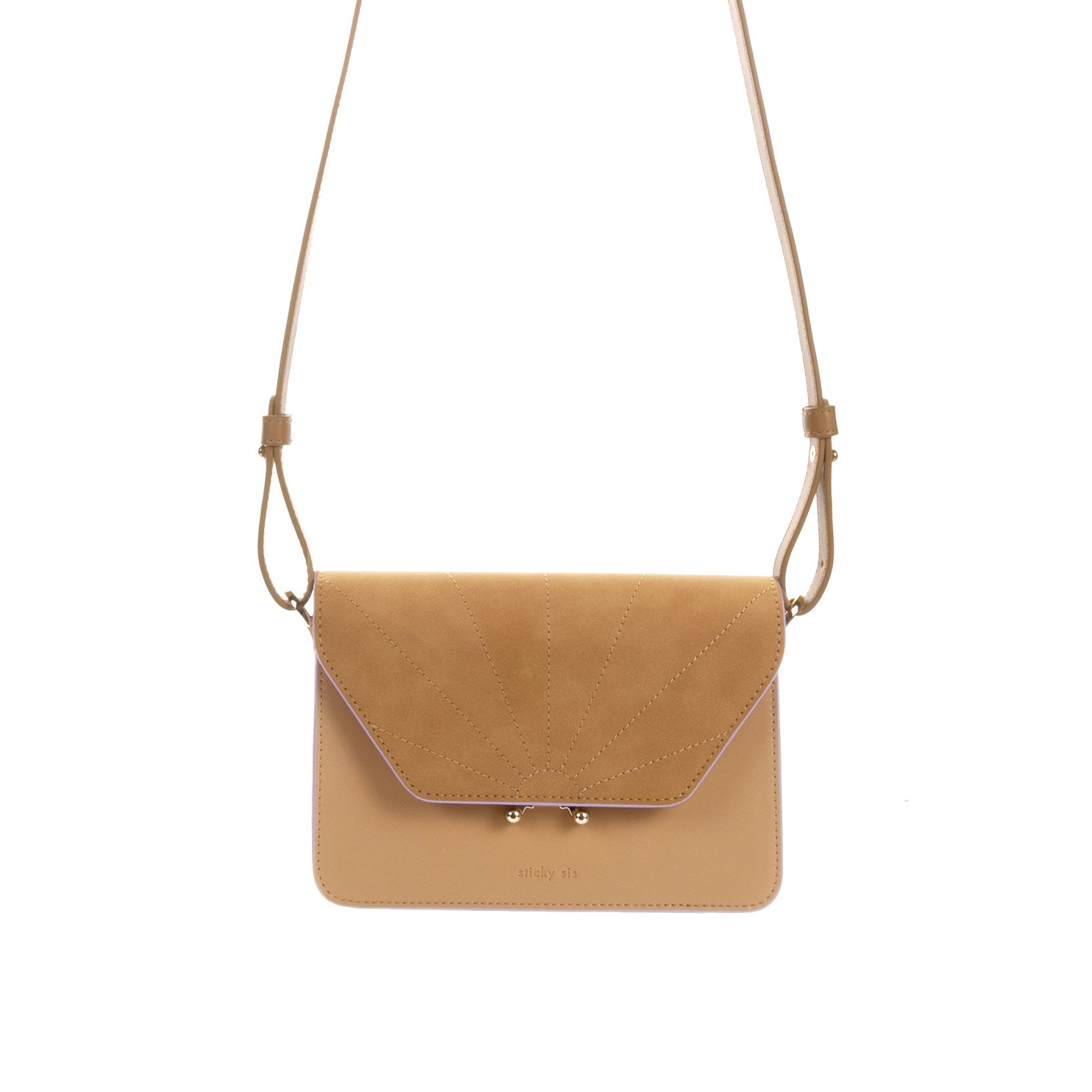 Materials: Exterior: vegan leather; Flap: vegan suede; Interior: polka-dot printed linen; Zipper: YKK; Hardware: silver