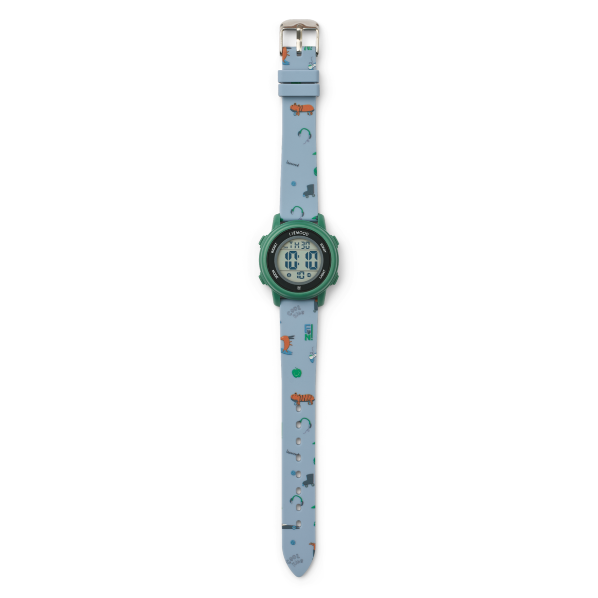 The Sussi children's wristwatch from Liewood is the perfect everyday companion: lightweight, comfortable, and child-friendly – with a practical alarm function, interchangeable display layouts, and adjustable light colors. The soft silicone strap sits comfortably on the wrist and is easy to adjust. Ideal for playfully developing a sense of time – in a design that children love to wear.