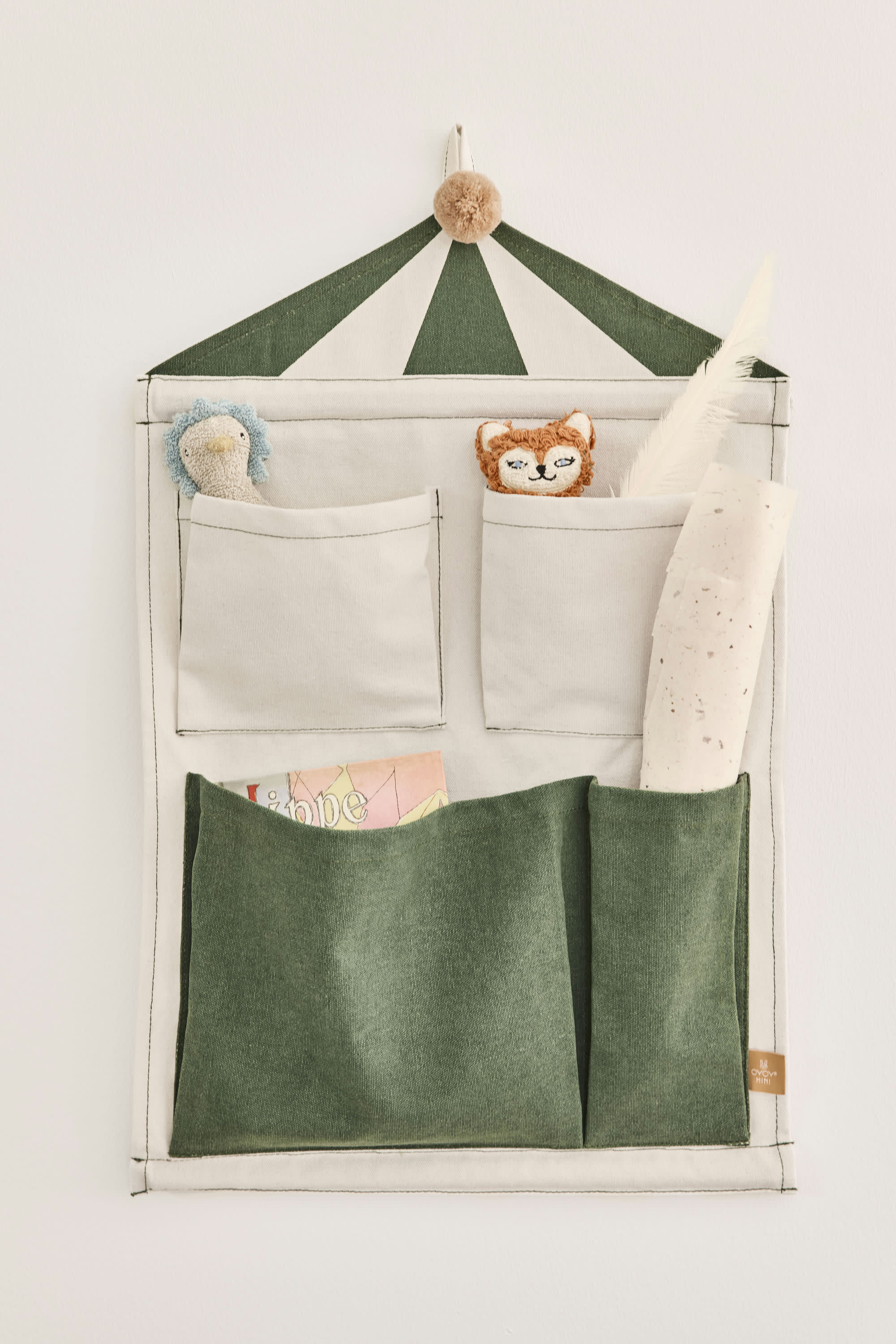 The OYOY MINI Circus Wall Storage brings playful organization to a child's room. Inspired by the colorful world of the circus, it offers space for books, stuffed animals, or small treasures, making tidying up a pleasure. Thanks to its compact dimensions, it can be mounted on the wall in a variety of ways—perfect above the desk, the bed, or in the play area.